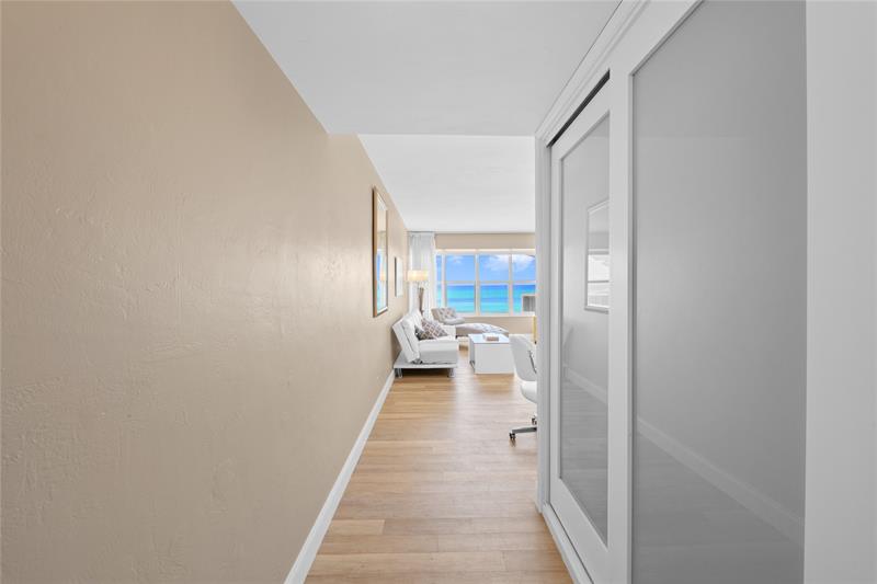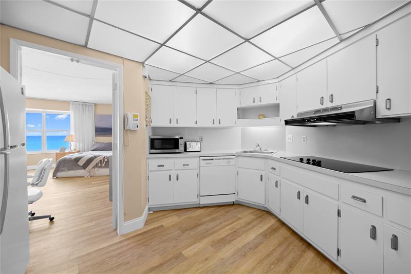 Step into your perfect oceanfront retreat without the hefty price tag! This spacious studio offers direct ocean views the moment you walk in. The open layout feels bright and inviting, featuring large impact windows that fill the space with natural light. Enjoy a spacious kitchen with ample storage space. Bathroom has tub/shower combo. Matching laminate flooring throughout. Extras include a new hot water heater, multiple closets and additional storage locker. Building allows in-unit washer/dryer installation. Resort-style amenities include a large pool, laudnry area, tiki bar with grilling area and TV, fitness center, valet, and community room. Conveniently located within walking distance to restaurants, shops, and pharmacy. Valet $50 a mth, self park $30 a mth and cabanas $10 a day.