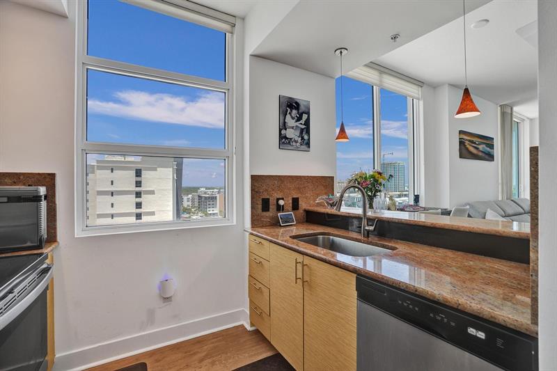 This corner unit comes with 2 assigned parking spaces and features 2 beds, 2.5 baths, open-concept living, a modern kitchen, floor-to-ceiling impact glass, high ceilings, and abundant natural light. Enjoy stunning city views from the living area. The primary suite offers a large walk-in closet and a spa-style bathroom with double sinks, a soaking tub, and a separate shower. The guest bedroom includes a private bathroom and generous closet space. Prime location—walking distance to Downtown, Las Olas, Flagler Village, Brightline station, restaurants, and shops. Just 15 minutes to FLL Airport and the beach. Pet-friendly building with resort-style amenities: gym, pool with hot tub, clubhouse, business center, 24-hour front desk, and EV charging stations. Storage unit and fiber internet include