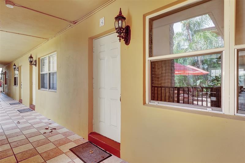 YOUR OWN PRIVATE PATIO. 2 bed/2 bath 1st Floor Corner Unit W private patio in Boutique Building Situated in Desirable Victoria Park! Walk right out your door to the pool. Meticulously maintained unit features newer tile floors throughout, BRAND NEW 2024 fixtures, crown molding, built-in closet systems and updated kitchen with granite counters & SS appliances. Beautiful French doors lead out from living area to private spacious patio, great for entertaining and barbecuing! 2 ASSIGNED PARKING SPACES AND Washer/Dryer IN UNIT. appliances new within last 2 years. Gated PET friendly building with private tropical pool area across the street from Holiday Park. Restaurants! Can Rent right Away- NO RENTAL RESTRICTIONS!!!
