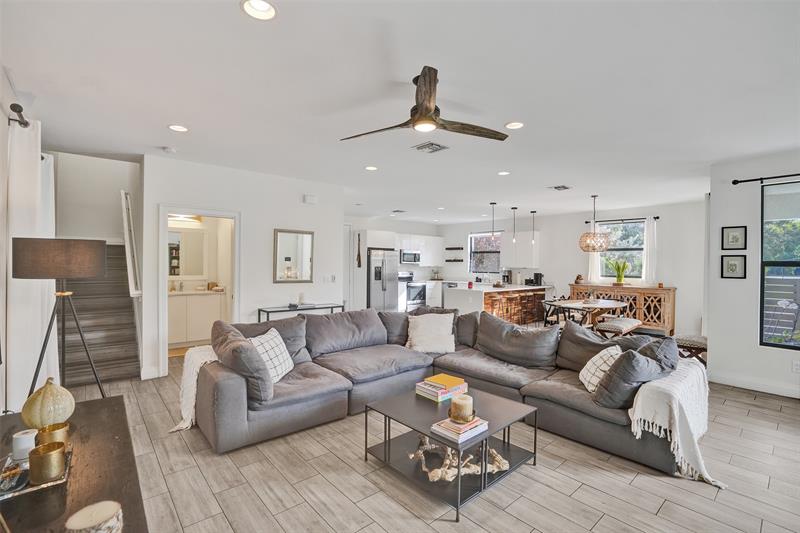 Beautiful fee-simple townhouse with no HOA, offering 3 bedrooms, 2.5 bathrooms, impact windows and doors, high ceilings, and 2,130 sq ft of modern living. Built in 2018, the home features an open layout with a stylish kitchen, modern white cabinetry, quartz countertops, a large island, and excellent storage, including a pantry. Upstairs, the bedrooms are bright and comfortable. The primary suite offers a spacious feel with a large walk-in closet and a double-sink vanity. Enjoy a private, fully fenced patio ideal for relaxing or entertaining. Additional features include a one-car garage, private driveway, and abundant storage. Excellent location near Downtown Fort Lauderdale, Las Olas, Flagler Village, parks, shopping, and the beach. Priced below market value. Interior freshly painted.
