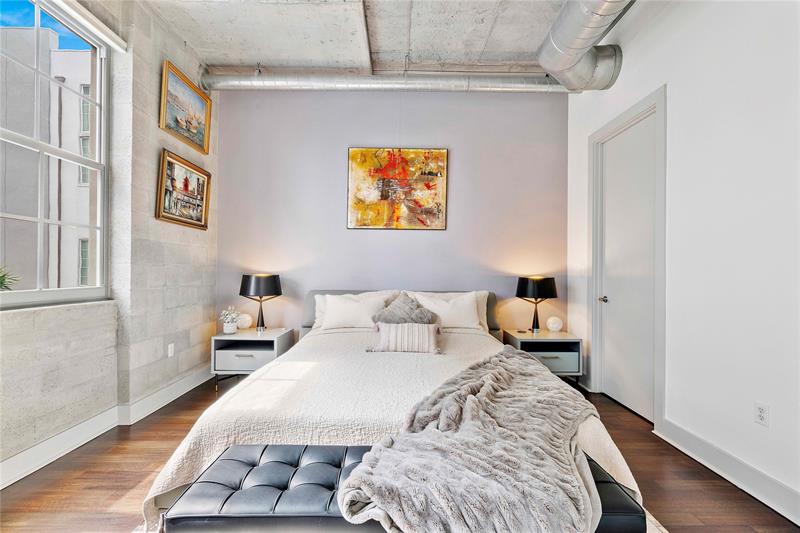 Discover urban living in the heart of Flagler Village, Fort Lauderdale's most sought-after neighborhood. This 2-bed, 2-bath loft-style residence offers a perfect blend of industrial design & modern luxury. The kitchen boasts sleek quartz countertops and a gas stove with stainless steel appliances. The bathrooms are elegantly finished with marble tile, adding a touch of sophistication. The guest bedroom provides flexibility with the option to embrace the open loft style or create privacy with sliding frosted glass doors. Expansive impact windows illuminate the space, while the private balcony overlooks the heated pool. Additional amenities include a BBQ area and fitness room on ground level. Just minutes from the beach, downtown Fort Lauderdale's vibrant Las Olas Blvd