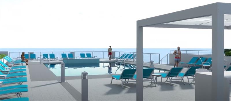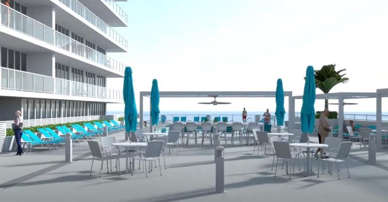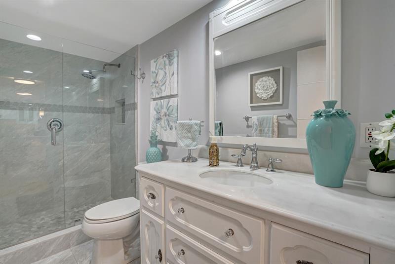 Beautiful, renovated 2-bedroom 2-bath luxury condo in the Galleon. Owners spared no expense, including porcelain wood floors throughout the living area, Quartz kitchen counters with an enormous 4'x9' waterfall edge kitchen island, Stainless Steel appliances, and a washer and dryer. Enjoy the SE ocean views from the spacious, elongated balcony and floor-to-ceiling hurricane-impact windows. This property features a LARGE 16X16 master bedroom with a dressing area. There is also 1 parking spot in the garage. The Galleon features 24/7 security, two gyms, a library, men's and women's saunas, and large social rooms. At this time, the pool is closed due to renovations. Free Wi-Fi and cable are available through Broadstar. Service Animals only. The pool deck picture is from last year.