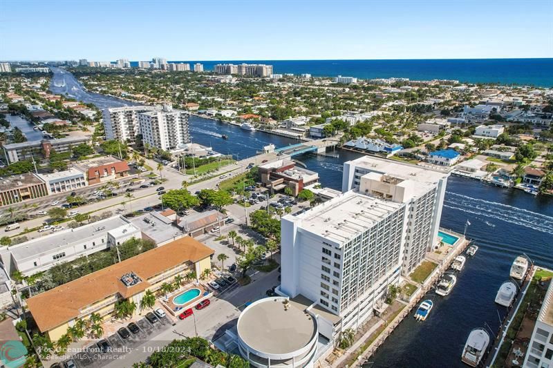 Penthouse surrounded by intracoastal waterway. Bird's eye picturesque view of ocean and intracoastal. Boating and busy restaurant bars below. Five minute stroll to beach front. Live a cruise ship docked at port lifestyle. Tile floor throughout, spacious living room, floor to ceiling whole wall impact windows. Generous closet spaces in both bedrooms. Open concept master bedroom to bathroom spa romantic setting relaxes body and mood. 2 full bathroom tiled marble floor. John Lennon Imagine ABOVE US ONLY SKY, ...ALL THE PEOPLE LIVIN' TODAY makes Penthouse cruise lifestyle to achieve your dream I'M ON THE TOP OF THE WORLD. Concrete restoration assessment and 50 year building certification project is in the process of completion with money in reserves.