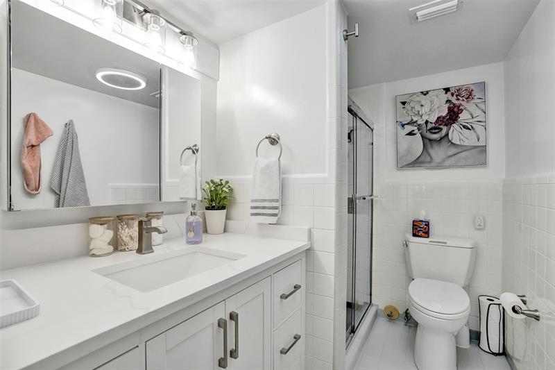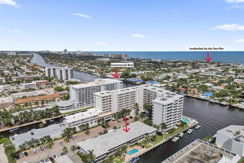 Completely open & very spacious 2 Bed, 2 Bath Waterfront condo. Boutique style building only 3 stories. This is a Corner unit, located on the Top floor giving ultimate privacy. Floor to ceiling windows give an incredible view of the canal & the main intercoastal. Large floor plan offers 1,350 Sq Ft and ample natural light. Sleek kitchen with modern appliances. Built in bar great for entertaining. Washer/dryer in the unit + Additional storage. Bldg is finishing updates including: concrete restoration, painting, refurbished pool area & more. All assessments paid in FULL. HOA fee includes exterior insurance/wind/hurricane, water/sewer/trash + more. Assigned parking space. Elevator in building. Walk to Lauderdale-by-the-Sea, enjoy restaurants & the beach. Boat dockage available for rent.