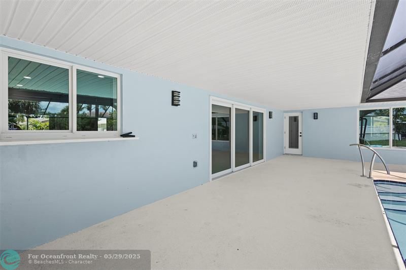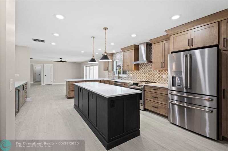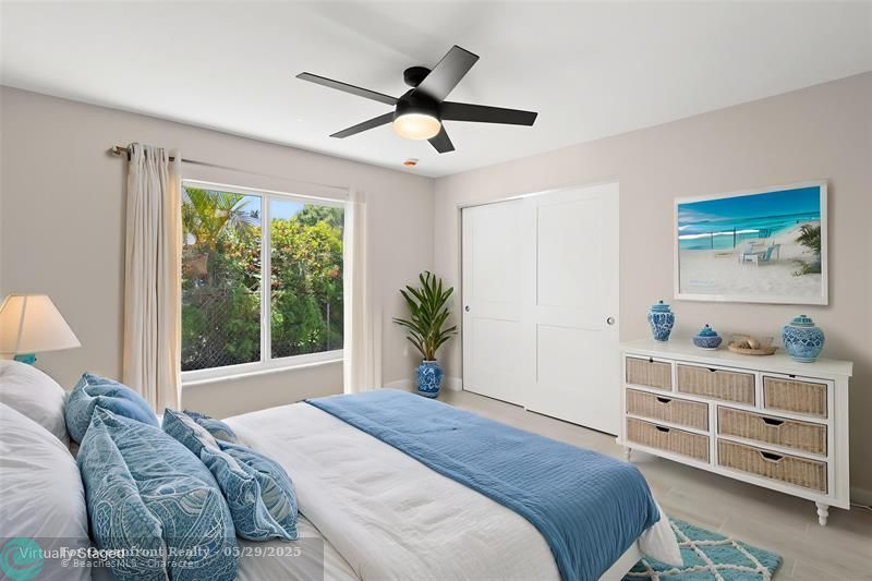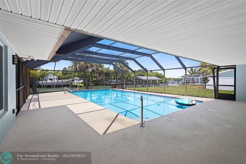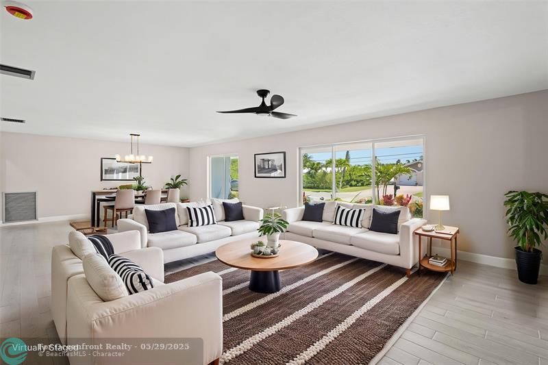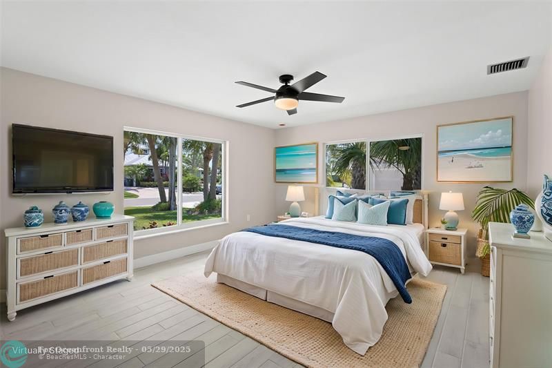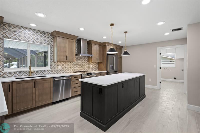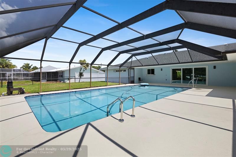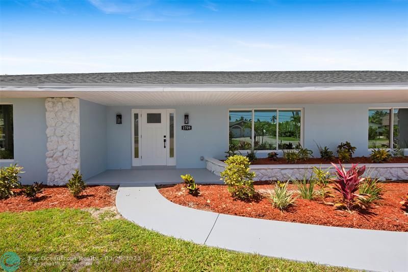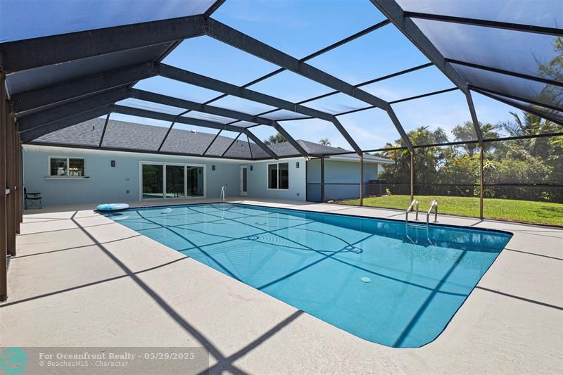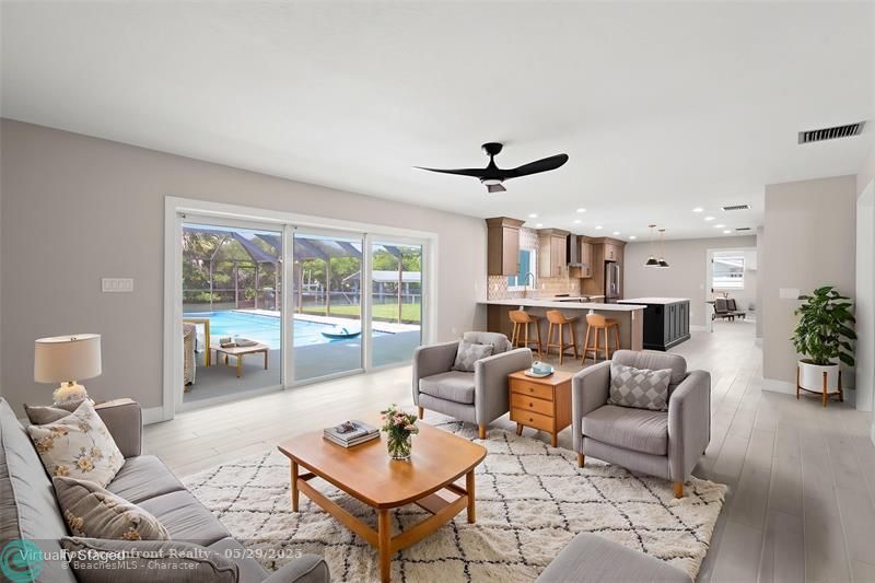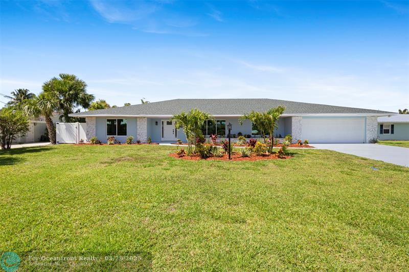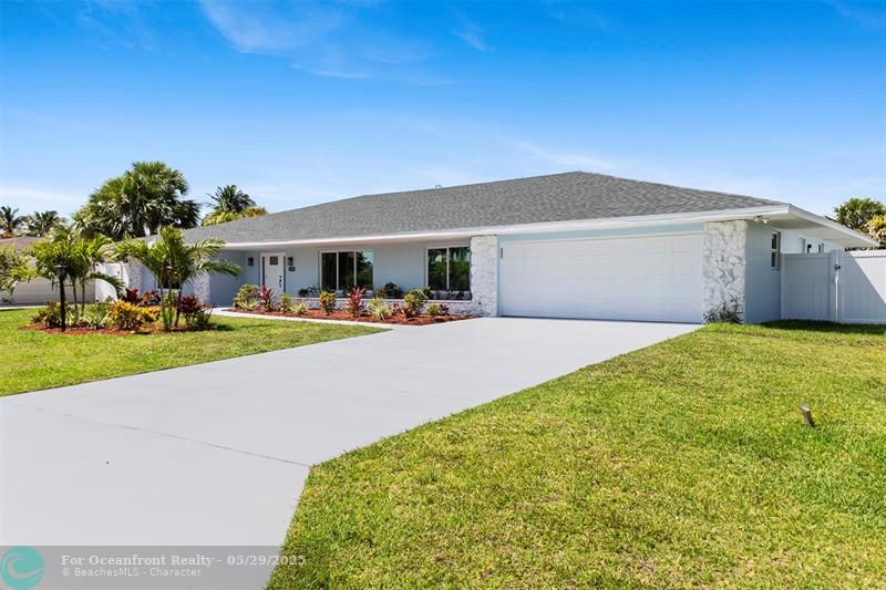 This beautiful one-level, CBS, waterfront home has been completely renovated & transformed into over 3,100 sq ft of elegance. Almost everything is new, including roof, HVAC, water heater, much of electric/plumbing, windows, kitchen & baths, lighting, flooring, & more. The kitchen boasts Cafe appliances, quartz counters, custom backsplash, large kitchen island, beverage fridge, & lots of cabinet space. The primary & secondary bedroom have ensuite baths & walk-in closets. The flex room is perfect for office, home gym, or extra storage. Boaters will love the 100 feet of waterfront on a protected canal, where you can access the inlet by boat. And of course, there's a large private pool (8ft deep) on a big lot on one of the most sought after streets on South Beach. Only 4 blocks to the ocean!