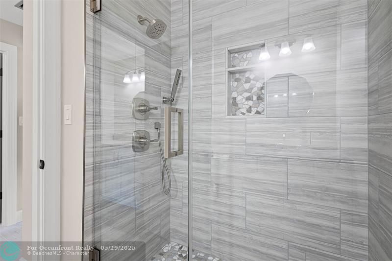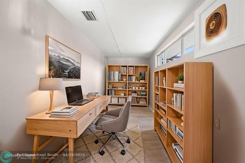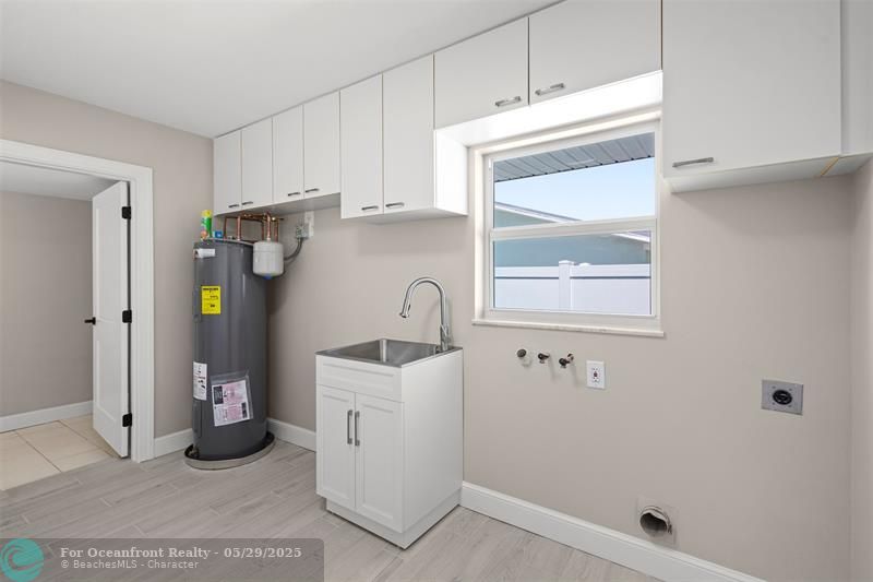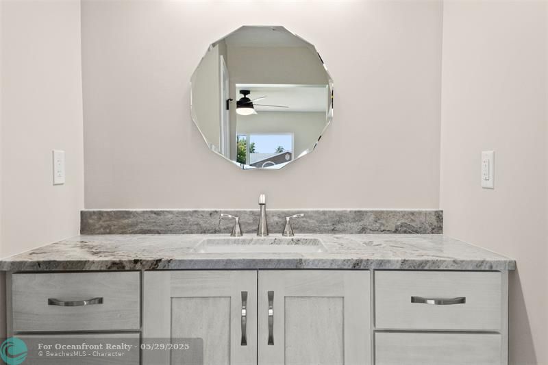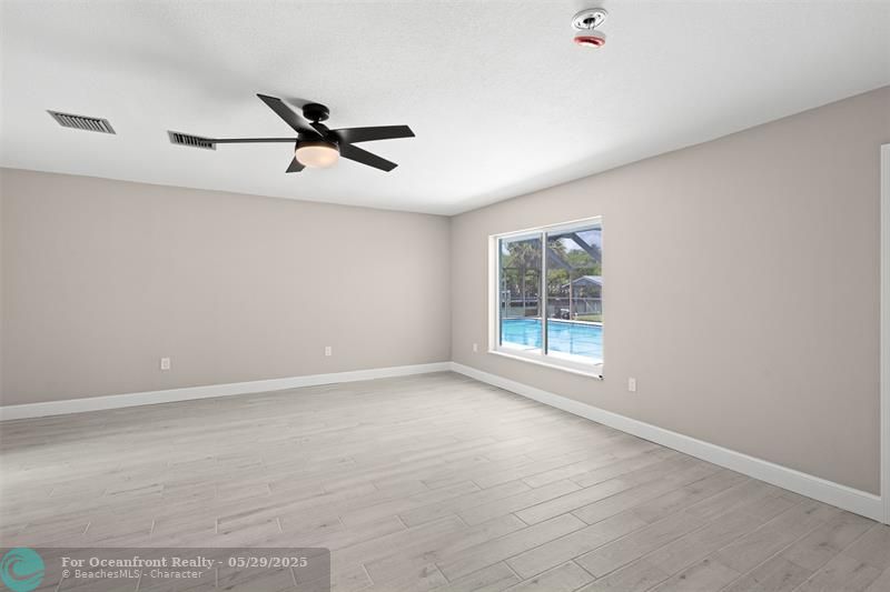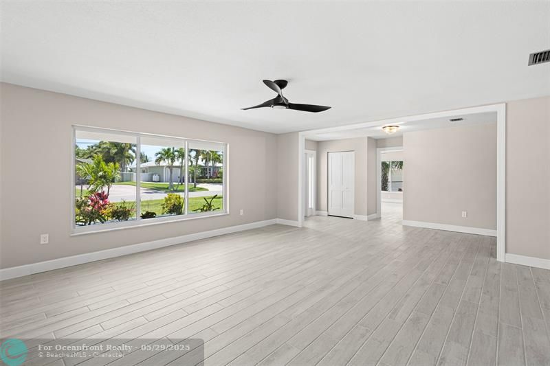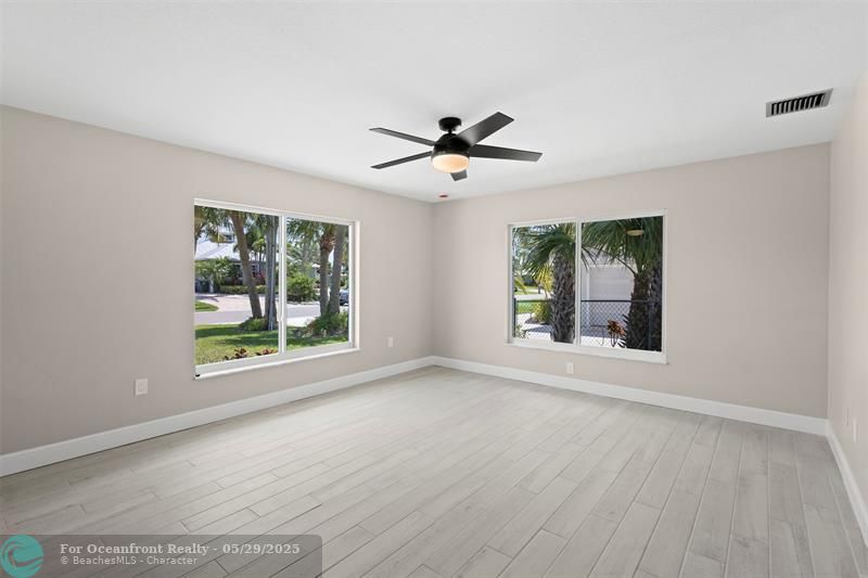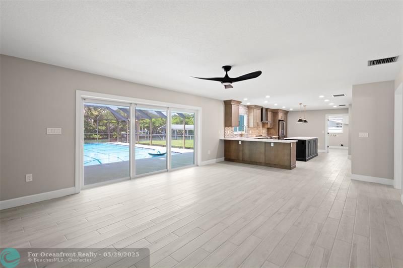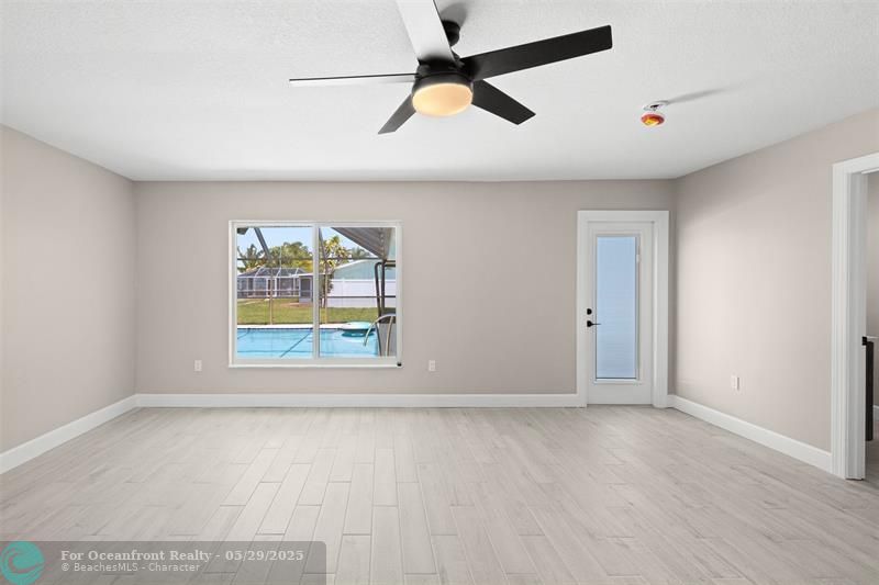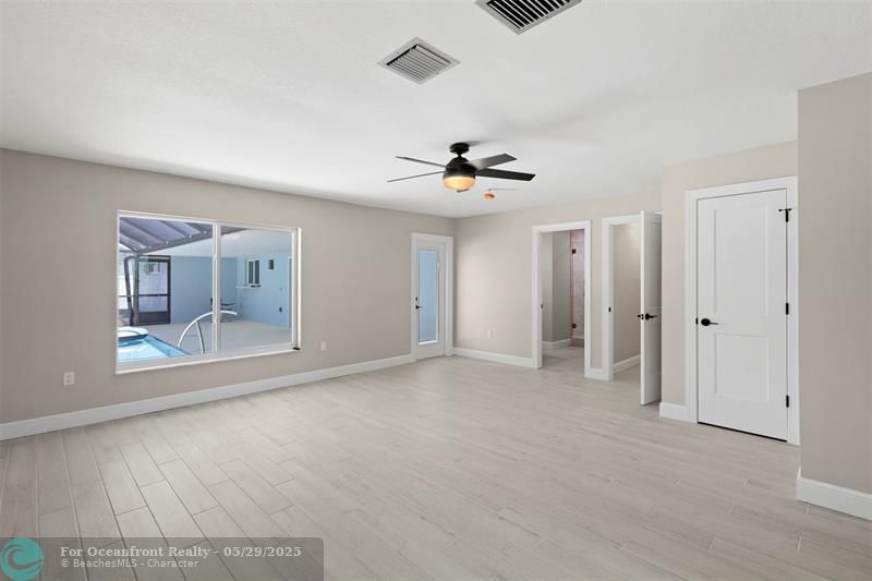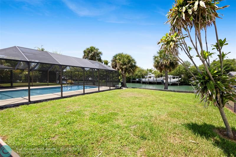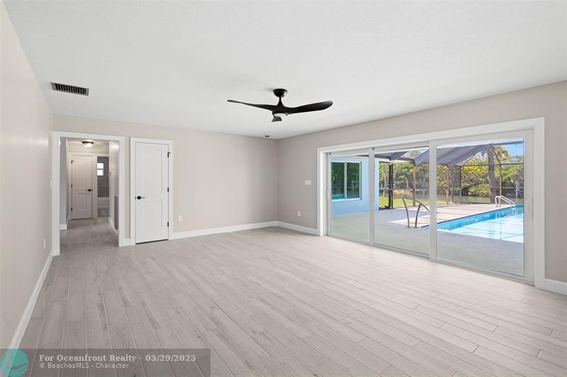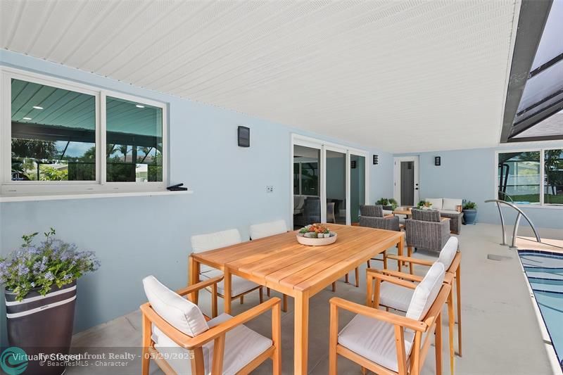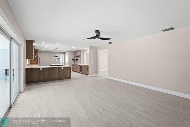 This beautiful one-level, CBS, waterfront home has been completely renovated & transformed into over 3,100 sq ft of elegance. Almost everything is new, including roof, HVAC, water heater, much of electric/plumbing, windows, kitchen & baths, lighting, flooring, & more. The kitchen boasts Cafe appliances, quartz counters, custom backsplash, large kitchen island, beverage fridge, & lots of cabinet space. The primary & secondary bedroom have ensuite baths & walk-in closets. The flex room is perfect for office, home gym, or extra storage. Boaters will love the 100 feet of waterfront on a protected canal, where you can access the inlet by boat. And of course, there's a large private pool (8ft deep) on a big lot on one of the most sought after streets on South Beach. Only 4 blocks to the ocean!