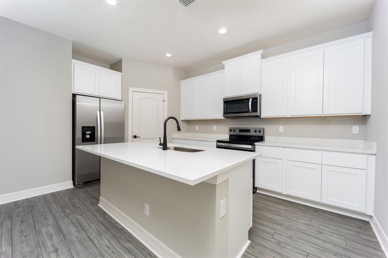 Ask about our limited-time incentives, builder-paid closing costs, and more! The Santa Maria offers a spacious, one-story layout designed for comfort and style. Located in Celebration Pointe, this 4-bedroom, 2-bath home features a charming exterior, generous bedrooms, and a welcoming covered entry. The chef-ready kitchen boasts a breakfast bar, sprawling countertops, and wood cabinets with crown molding -perfect for entertaining. Additional highlights include a laundry room and fully landscaped front yard. Enjoy a prime location with access to family-friendly amenities like walking paths, a playground, and a future community clubhouse. Plus, enjoy easy access to shopping, dining, and top-rated schools!