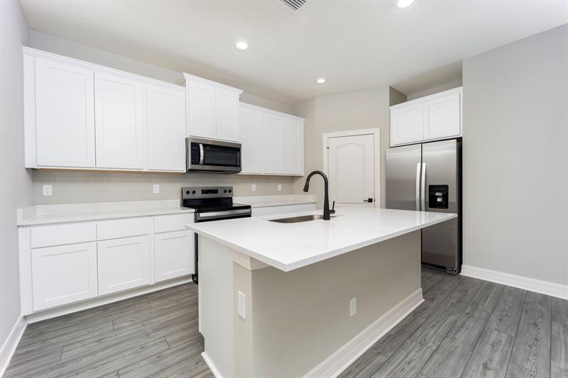 Ask about our limited-time incentives, builder-paid closing costs, and more! The Santa Maria offers a spacious, one-story layout designed for comfort and style. Located in Celebration Pointe, this 4-bedroom, 2-bath home features a charming exterior, generous bedrooms, and a welcoming covered entry. The chef-ready kitchen boasts a breakfast bar, sprawling countertops, and wood cabinets with crown molding -perfect for entertaining. Additional highlights include a laundry room and fully landscaped front yard. Enjoy a prime location with access to family-friendly amenities like walking paths, a playground, and a future community clubhouse. Plus, enjoy easy access to shopping, dining, and top-rated schools!