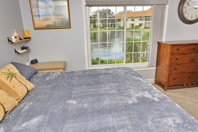 WELCOME HOME! Beautifully updated 1st-floor 55+ condo offering peaceful Florida living with amazing water & fountain views! This spacious 3-bedroom (one used as a den) home features a remodeled kitchen & baths, tile in main living areas and den, carpet in bedrooms. Enjoy the enclosed patio perfect for relaxing or entertaining. Crown molding, recessed lighting, shiplap accents, newer roof, updated windows, and accordion hurricane shutters add style and peace of mind. Plenty of storage throughout. Experience an active or social country club lifestyle with fantastic amenities—without the high fees! Close to shopping and easy access to Florida's Turnpike. One small pet up to 25lbs permitted. Rentals permitted after 2 years of ownership. It's a must see. STAND ALONE FREEZER DOES NOT CONVEY