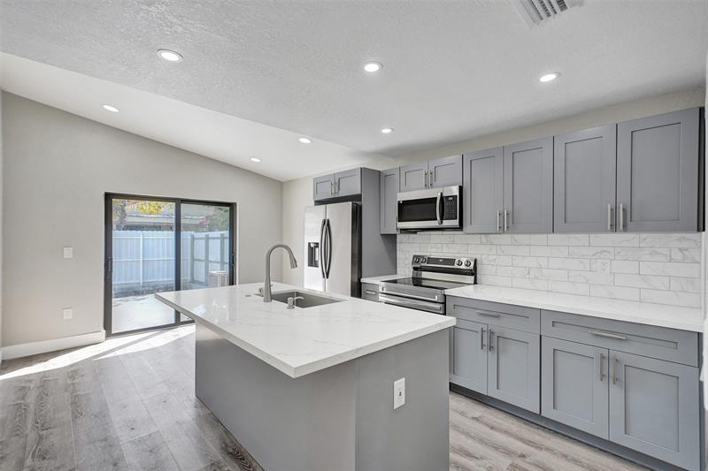 Turnkey perfection in gated El Prado by the Lake! FULLY upgraded 3-bed, 2-bath home checks every box: NEW ROOF, NEW hurricane impact doors, windows & sliders, NEW A/C, and NEW tankless water heater—peace of mind, security, insurance savings. NEW designer kitchen shines: quartz countertops, soft-close cabinetry, custom island, stainless steel appliances. Both bathrooms have been beautifully remodeled with frameless showers, modern vanities, and premium finishes. You’ll love the luxury vinyl plank floors, LED lighting, knockdown ceilings, and fresh paint throughout. Enjoy a large fenced yard for outdoor living plus community perks including 24/7 security, pool, basketball, and playground. Low HOA and a prime location near shopping, dining, major highways—don’t wait, this one is a must-see!!