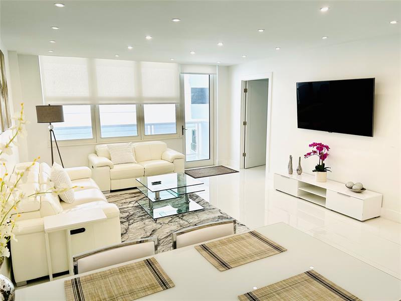 Unique Opportunity – Priced for Quick Sale! Modern, fully renovated 2-bedroom, 1.5-bathroom condo with stunning upgrades throughout! Located in an oceanfront building on the beach, just steps from the Hollywood Boardwalk! This sleek and contemporary unit has been completely remodeled, featuring new bathrooms, marble floors throughout, hurricane-proof windows, doors, custom-built closets/wardrobes, ductwork, lighting, and remotely controlled blinds. Enjoy the convenience of brand-new appliances, including a refrigerator, microwave, dishwasher, washer, and dryer. The kitchen showcases modern fixtures and elegant countertops, while the bathrooms are equipped with premium faucets and sinks.