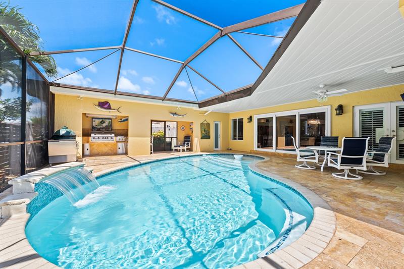 WHAT A SPECTACULAR 3/3 HOME PLUS OPTINAL DEN/OFFICE/4TH BEDROOM AND 1 CAR GARAGE WITH AMAZING VIEWS OF SOUTHLAKE DIRECTLY FROM THE LIVING ROOM & DINING ROOM. NO FIXED BRIDGES WITH OCEAN ACCESS, LOVELY PRIVATRE DOCK AND 16K LB BOAT LIFT. IMPACT WINDOWS THROUGHOUT. ENJOY YOUR LARGE SCREENED IN POOL WITH WATERFALL, COVERED OUTDOOR KITCHEN WITH GRILL & SINK, AND FULL CABANA BATH. BEAUTIFUL KITCHEN OFFERS GRANITE COUNTER TOPS, S/S APPLIANCES, WOOD CABINETS, PANTRY, AND BREAKFAST AREA WITH VIEWS TO THE COVERED PATIO AND POOL. CROWN MOLDING AND PLANTATION SHUTTERS THROUGHOUT. ALL UPGRADED PLUMBING AND ELECTRICAL. PRIMARY BEDROOM HAS A GREAT WALK IN CLOSET, REMODELED BATHROOMS AND ACCESS TO THE POOL AREA. GUEST BATHROOM REMODELED AS WELL. LARGE CIRCULAR DRIVEWAY FOR PLENTY OF CARS TO PARK.