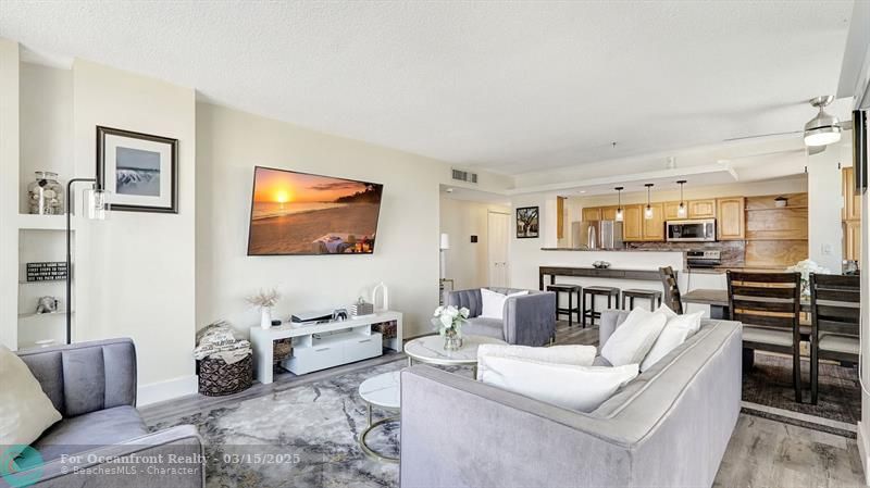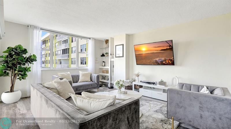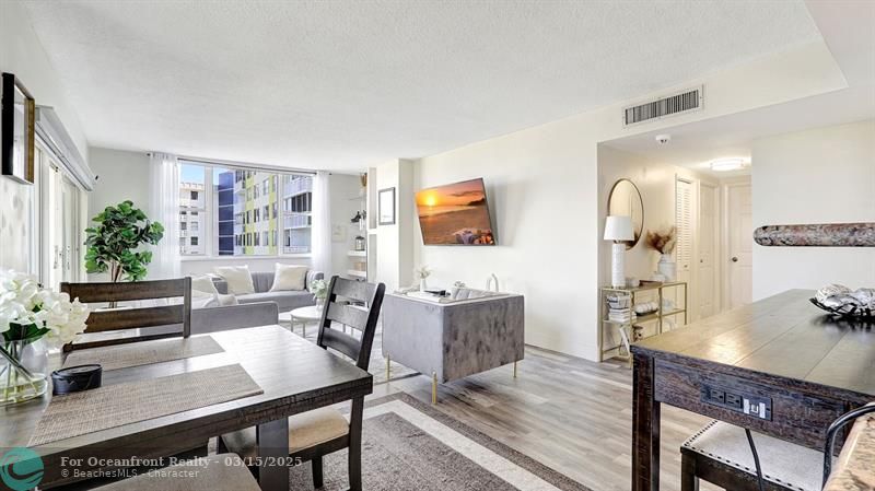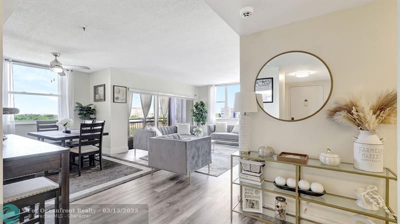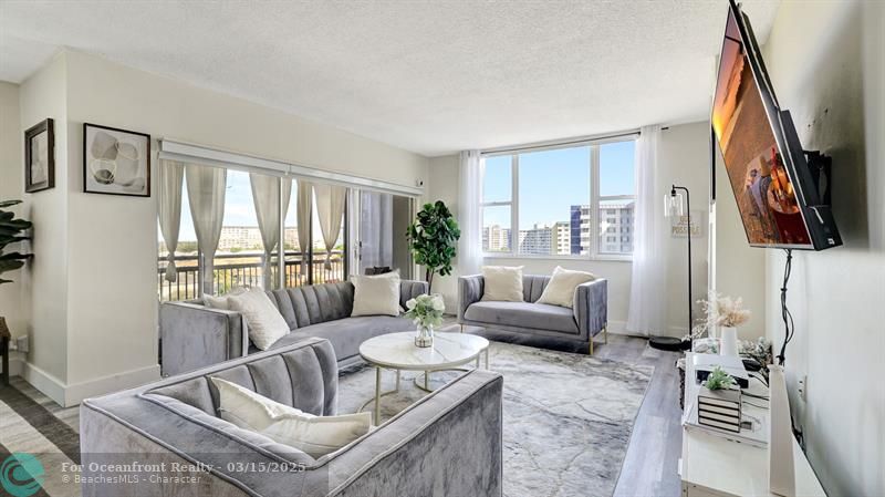 ALL AGES BUILDING! ALL ASSESSMENTS PAID! This spacious corner unit offers an incredible layout, designed for modern living. Bathed in natural sunlight, the home feat. oversized windows that provide a bright & airy atmosphere throughout. Step into the main living area, where a seamless flow leads to the enclosed patio, offering tranquil views of lush green landscapes. The upgraded vinyl flooring throughout provides a sleek, low-maintenance touch, adding both style & durability. Enjoy privacy & convenience with electric, remote-controlled blinds in both bedrooms, making it easy to adjust light levels to suit your mood. Maintenance fee includes: water, cable, pest control, & access to the storage & bike room, making this condo not just a beautiful home, but a worry-free lifestyle.