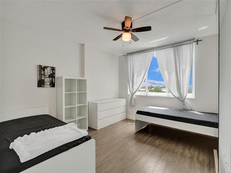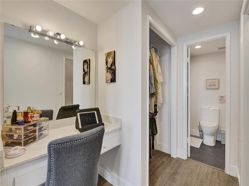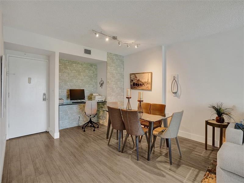 • Modern kitchen with sleek countertops and stainless-steel appliances.