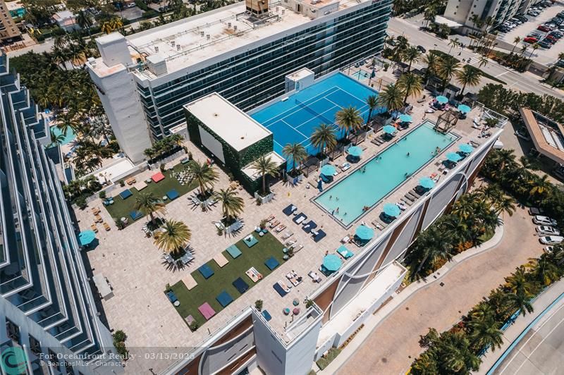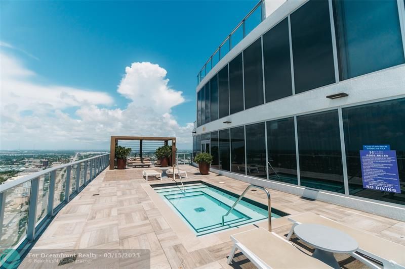 The building boasts exceptional amenities and provides convenient beach access with chairs and towels available through its partner building.
