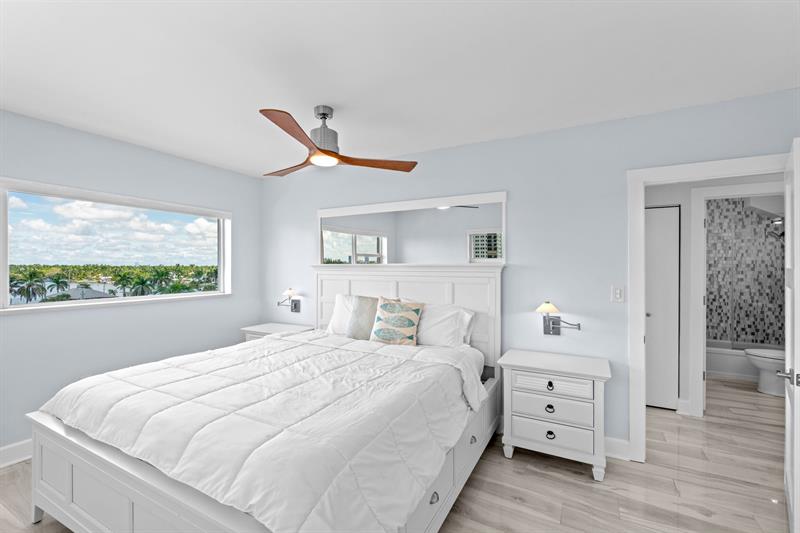 Experience boutique coastal living in this fully renovated 2BR residence within an Art Deco–inspired 6-story condo directly on the oceanfront and Hollywood Broadwalk. Enjoy sweeping views of the Atlantic to the east and Intracoastal to the west—one of the most coveted Boardwalk locations. Inside, light neutral finishes, Italian porcelain tile with soundproofing, and Level 5 ceilings create a modern, airy feel. Raised bulkheads add height, while the sleek kitchen features new appliances and an island cooktop with ocean views. Bathrooms are custom designed with high-end finishes, designer lighting, and unique mirrors. Additional upgrades include hurricane-impact windows and doors, motorized blinds, custom window seating, new ceiling fans, and washer/dryer hookup.