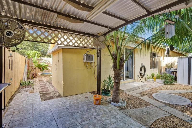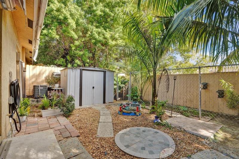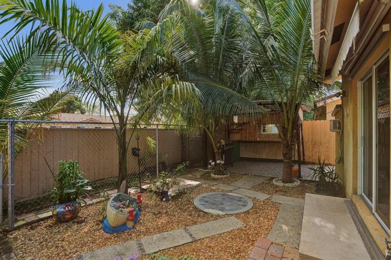 This beautifully maintained, modern one story townhome in a gated neighborhood features a 2 bedroom 2 bath corner unit. The open concept floorpan offers bright living and dining area with high ceilings and tile flooring all throughout the home with updated light fixtures. The kitchen is equipped with ample and soft close cabinet space, granite countertops, updated appliances, recessive lighting and a breakfast bar for convenience. The primary bedroom has a walk-in closet with its private bathroom. Home offers an in unit laundry, plenty of storage with sheds in the back, with an assigned parking and guest parking. You have a backyard that is fenced in for privacy and a barbecue area that you can enjoy with family and friends all year round. Water Heater 2020.