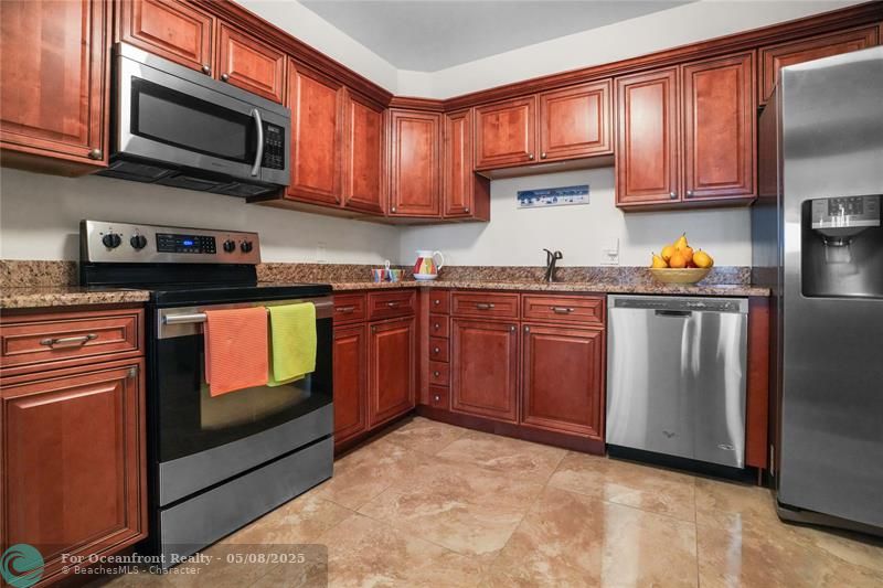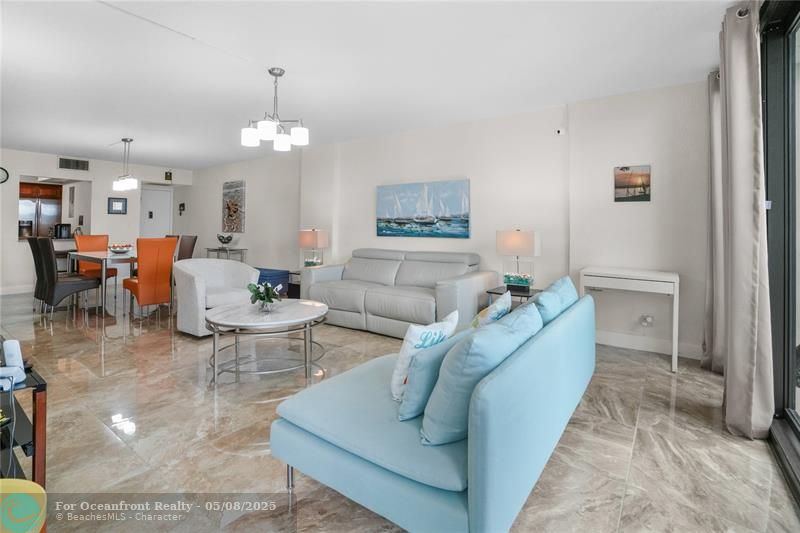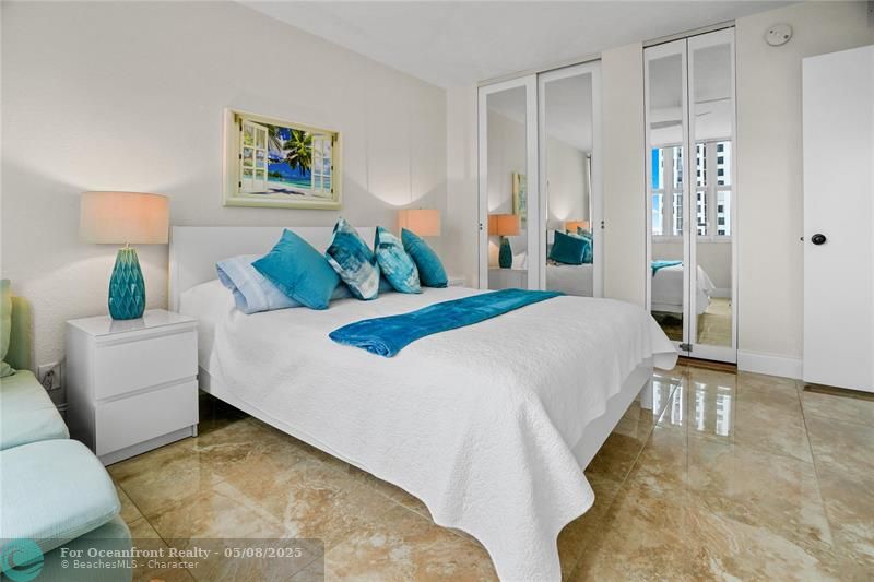 Beautiful and elegant 2 Bed, 2 Bath apartment, meticulously maintained with large wraparound balcony. Kitchen cabinets and bathroom vanities have been updated to complement luxurious granite countertops, with the floor being porcelain tile throughout. Updated with new hurricane impact windows and doors for improved safety and reduced noise from outside. Also comes with plentiful storage, with a spacious walk-in closet in the primary bedroom and 2 personal storage lockers just outside the unit on the same floor. Furniture negotiable.
