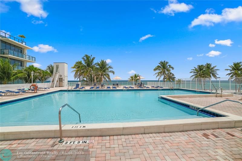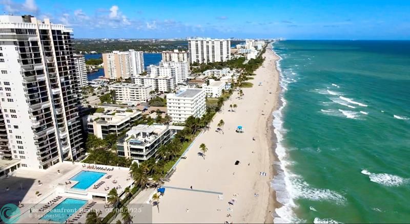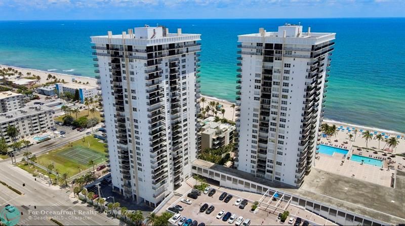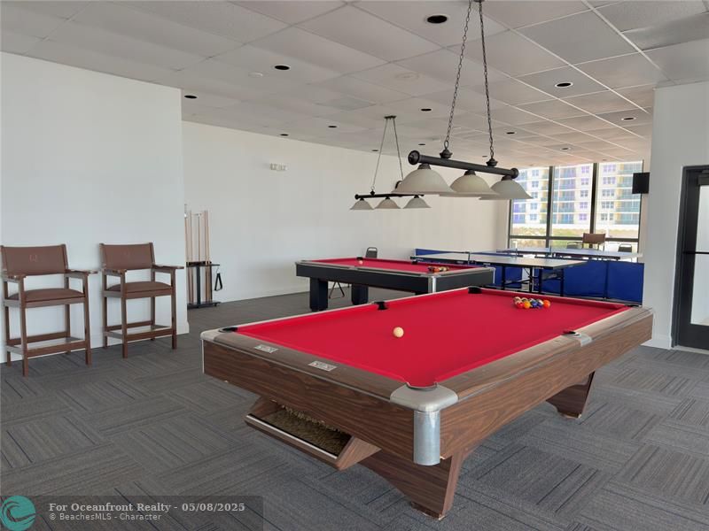 Complex is directly by the ocean. Amenities include: beach service, onsite restaurant, 2 heated pools, 2 fitness centers, a sauna, 24-7 security, valet, business center, billiard and ping-pong room, library, kids play-room and even a golf practice room.