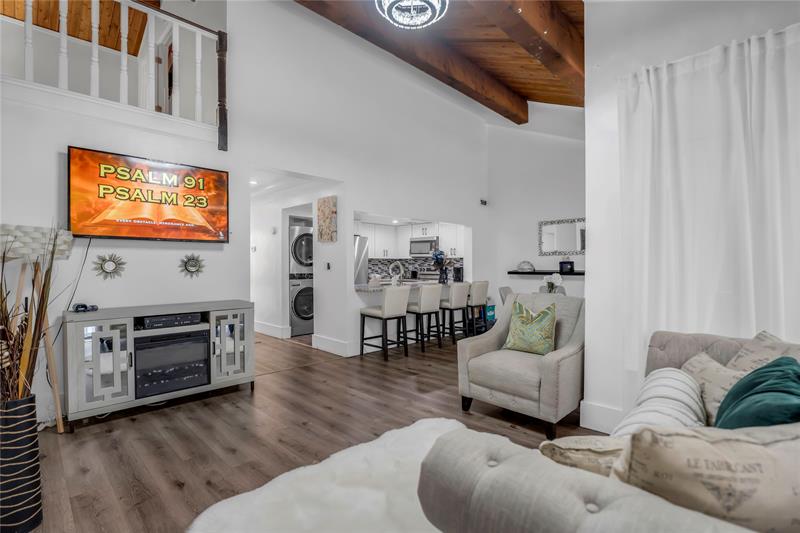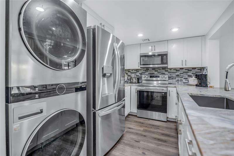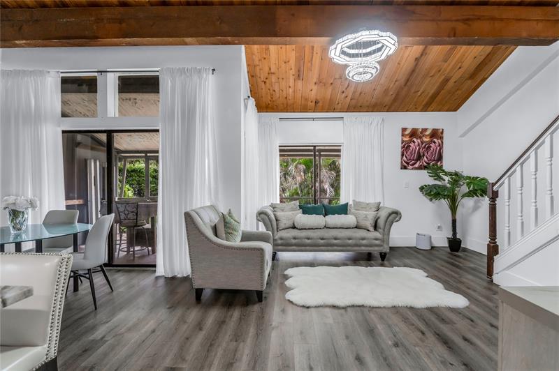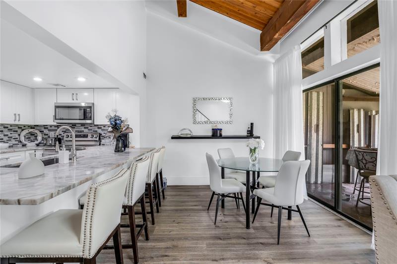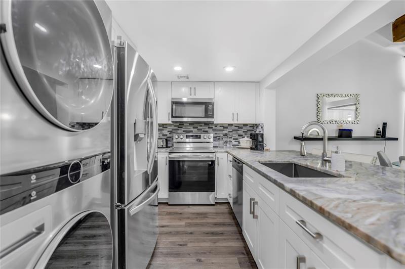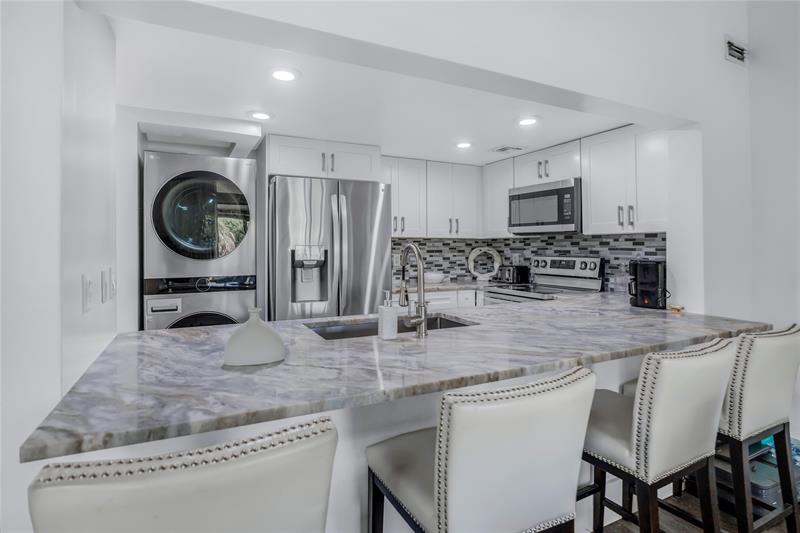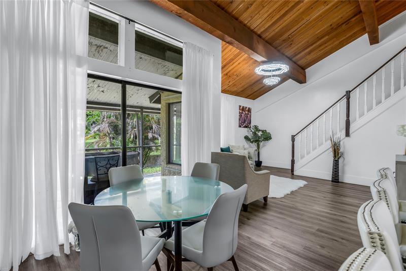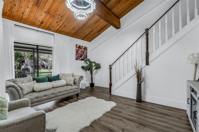Beautifully updated villa in the heart of Davie! Officially a 2BR/1.5BA, this home features a loft conversion that provides the functionality of a third bedroom while still offering an office area. The fully remodeled kitchen is a standout with wave-design granite countertops, modern cabinetry, and stainless steel appliances. Two spacious bedrooms are conveniently located on the first floor. Vinyl plank flooring throughout adds a contemporary touch, while the screened patio offers serene views of a small lake. Perfect blend of comfort and style!