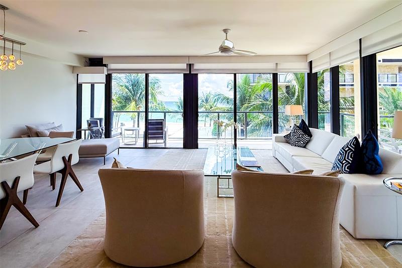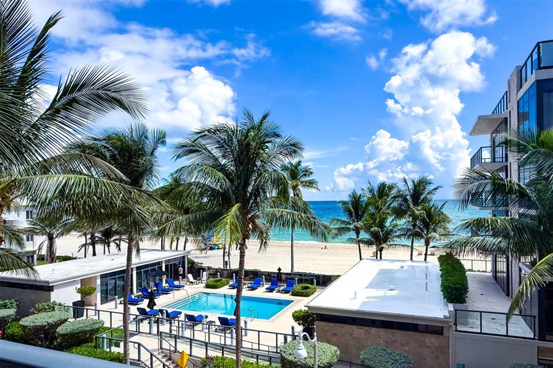 Rare opportunity in Hollywood's best kept secret boutique oceanfront community! Stunning fully furnished 3 bedroom, 3 bath condo with interior Den/TV room/overflow 4th bedroom. Gorgeous open floor plan with great room, dining and kitchen opening to large oceanfront terrace. Split bedroom floor plan with large Primary Suite with spacious bath and closets - plus 2 guest bedrooms. Close to fine dining and airports - Ready for Season - come and enjoy your new secret oasis at Sage Beach!