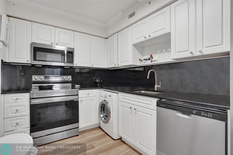 Discover your dream beachfront lifestyle in this stunning 1-bedroom, 1-bathroom condo with ocean views and beach access. Featuring brand-new stainless steel appliances, a combo washer/dryer, and waterproof laminate flooring, this freshly painted unit offers a modern and cozy retreat. Relax on your private balcony or enjoy resort-style amenities, including a heated pool, fitness center, Jacuzzi, and concierge services. Maintenance includes cable, internet, and water. Just steps from the famous Hollywood Boardwalk, this pet-friendly condo is perfect for beach lovers and city explorers alike! Short walk to newly opened Publix Supermarket on Ocean Drive. Video available upon request.