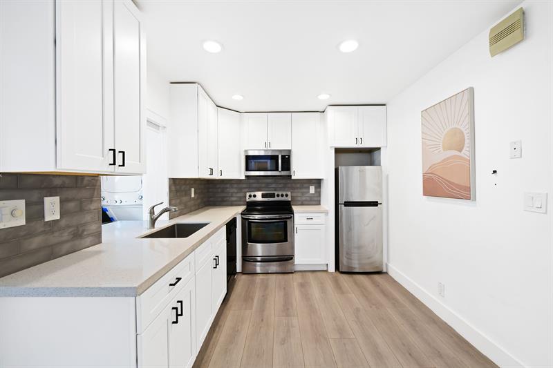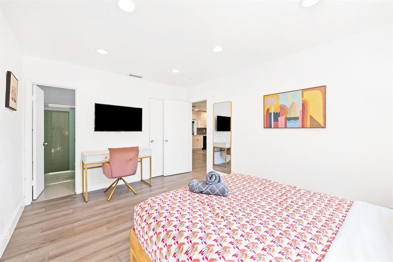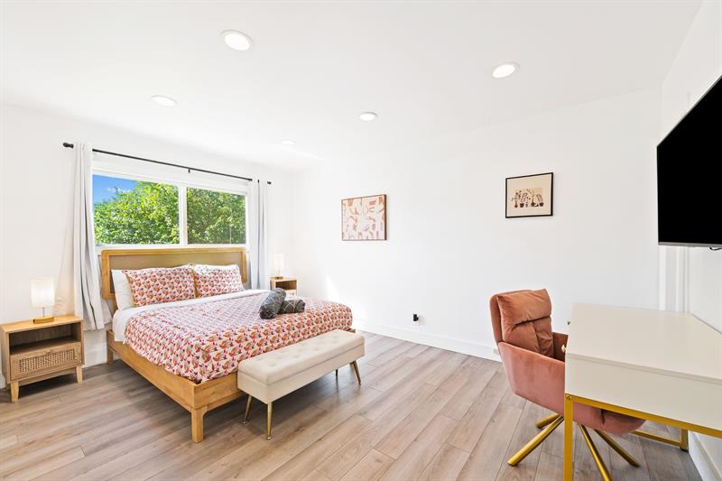 No HOA!! Rent short term, long term, or move right in! This substantially remodeled and fully furnished 2-bed, 2-bath boutique villa in Wooded Hills Estates, Hollywood, offers total flexibility and modern comfort. FEATURING: 2024 impact windows & doors, 2023 3-ton AC, 2016 roof, 2012 water heater, recessed lighting, and modern vinyl flooring throughout. The stunning 2023 kitchen features quartz countertops, white shaker cabinets, and new appliances. Enjoy a private fully fenced backyard, washer and dryer, and a primary suite with en-suite bath. With parking for two cars plus guest spaces and VA, FHA, and Conventional financing welcome, this is the perfect low-maintenance home or turnkey investment opportunity. Currently running as an AIRBNB, please contact me to schedule your showing!