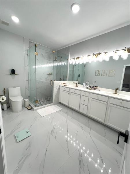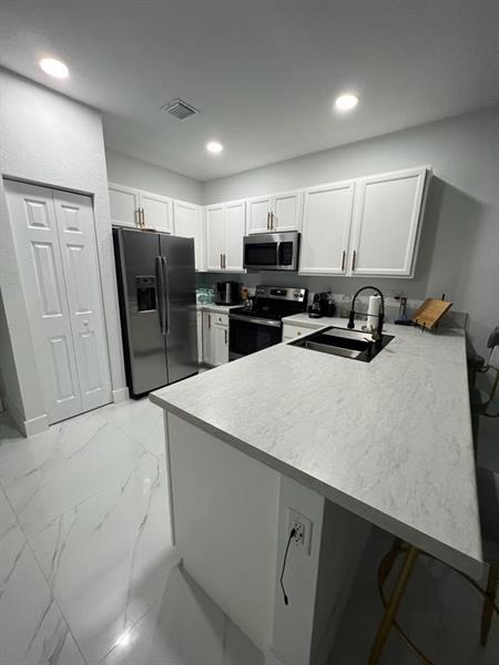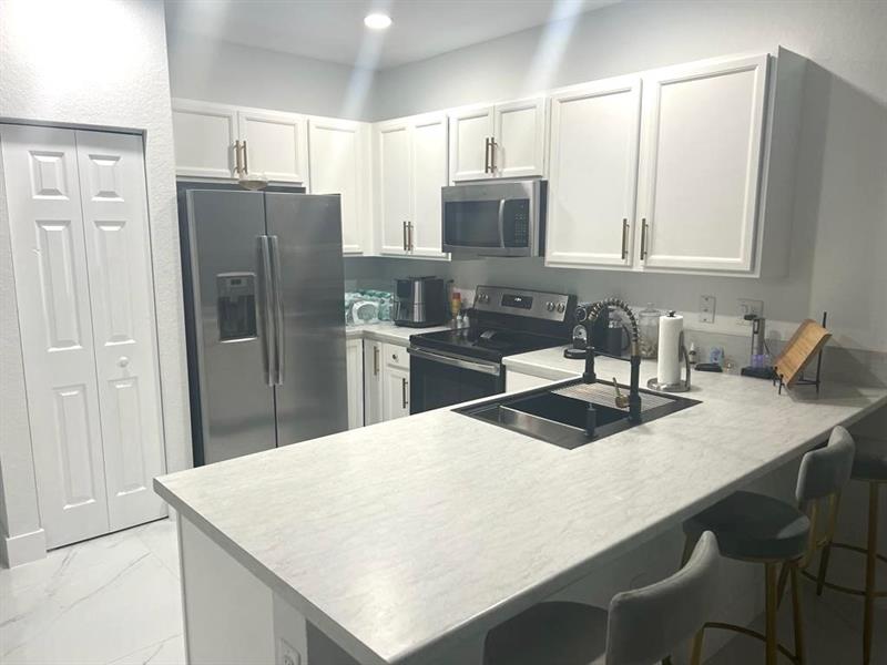 Welcome to this stunning 2019 townhouse featuring 3 bedrooms and 2.5 bathrooms, designed with modern living in mind. This move-in ready home offers porcelain marble tile floors, upgraded lighting and hardware, and elegant finishes throughout. The modern kitchen is complete with stainless steel appliances and a smart layout, while the bathrooms showcase glass and tile showers with luxury details. Upstairs, you’ll find a custom built-in walk-in closet, convenient laundry area, and spacious bedrooms. Additional highlights include smart home features for added convenience and an enclosed patio perfect for outdoor relaxation or entertaining. This community also offers resort-style amenities, including a modern clubhouse, fitness center, sparkling pool, and children’s play area.