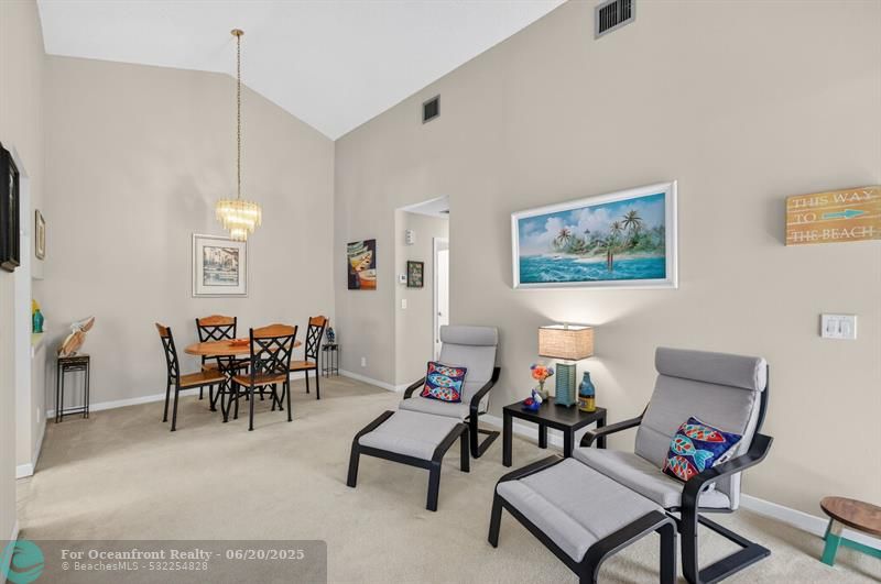 LIVE THE LIFESTYLE OF LAUDERDALE BY THE SEA IN THE TROPICAL OASIS OF CABANNA BAY VILLAGE SITUATED IN BETWEEN THE OCEAN & THE INTRACOASTAL WATER WAY. THIS 2/BED/2BED UNIT HAS VOLUME CEILINGS IN THE LIVING ROOM & DINNING ROOM MAKING THIS UNIT SEEM LARGER. BRIGHT LIVING AREA THROUGHTOUT UNIT. SIT ON YOUR SCREENED IN BALCONY HAVE A COFFER OR GLASS OF WINE ! CAN EAT IN KITCHEN WITH WINDOW OVERLOOKING THE TROPICAL LANDSCAPING. ROOMS ARE AMPLE WITH WALKIN CLOSET IN THE MASTERBED ROOM WITH LARGE EN-SUITE BATHROOM WITH NATURAL LIGHT COMING THRU THE WINDOW. UNIT CAN USE UPGRADING IF DESIRED & CREATE YOUR OWN INTERIOR DESIGN. 1 CAR GARAGE ATTACHED + AMPLE PARKING FOR GUESTS. WALK TO THE CLUBHOUSE & POOL 50 FEET AWAY. NEAR ALL STORES,RESTURANTS,HIGHTLIFE, BEACH IS 125 YARDS AWAY !
