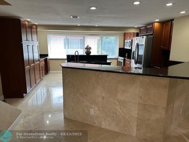 HUGE PRICE REDUCTION. This remarkable furnished three-story townhouse is ideally located within walking distance to the ocean beach, shopping and the intracoastal. The third floor features two spacious bedrooms and two full bathrooms. The second floor showcases a large gourmet kitchen with custom-made cabinets, pull-out shelves, and top-of-the-line appliances. Marble flooring in the kitchen and living room. Hurricane impact windows and balcony doors and brand-new roof. This home also offers two assigned parking spaces, a carport, and additional storage under the balcony. Community is equipped with 24/7 surveillance cameras. Upcoming improvements include asphalt paving and exterior building painting, all fully paid through special assessments