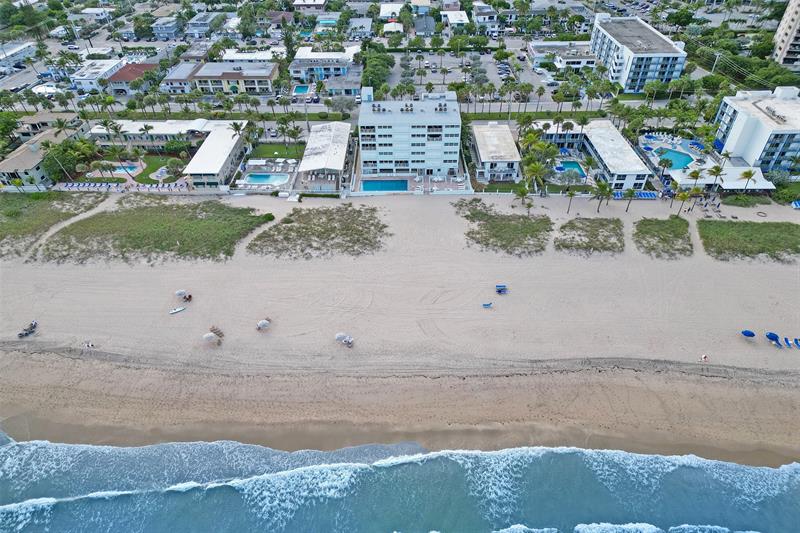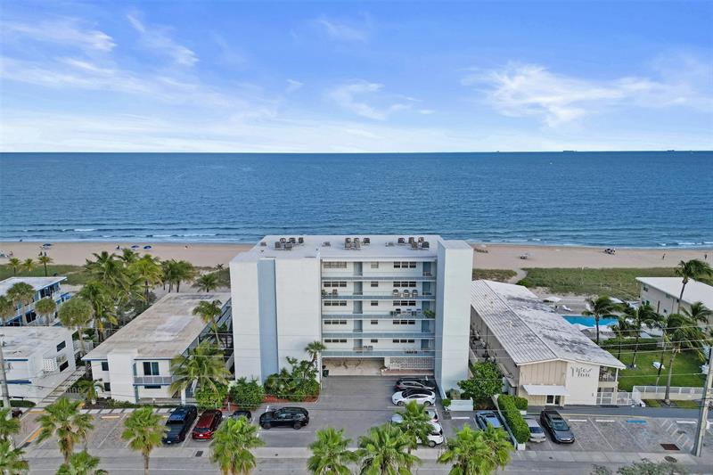 "Relax, you're here" for this very rare opportunity. Direct oceanfront, southeast corner unit condo in the heart of Lauderdale-by-the-Sea. Panoramic views of the ocean and the famous Lauderdale-by-the-Sea pier. This relaxed 2 bedroom 2 bath residence offers open living spaces and a private balcony to enjoy the serene sunrise over the water. Oceanfront primary with en-suite, generous guest room, and expansive coastal views from every angle. Well-maintained beachfront building with pool and private beach access, just steps to restaurants, shops, and everything there is to do at the town square. Everyday feels like a vacation here!