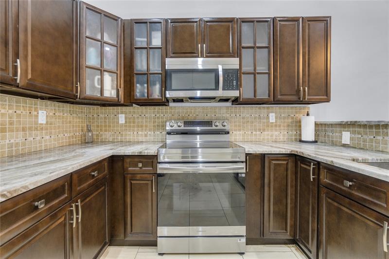 LEADING YOU HOME!! La Mirage is home for this beautifully maintained vaulted ceiling gem with 2 Bedrooms and 2 Baths split floor plan with one car garage. Your new home features a 2024 roof and remodeled kitchen with granite and stainless steel appliances, remodeled bathroom, newer A/C, accordion hurricane shutters, screen patio, freshly painted, storage room in a pulled down attic. Enjoy community pool and tennis court. HOA includes water, trash, cable, and common area.