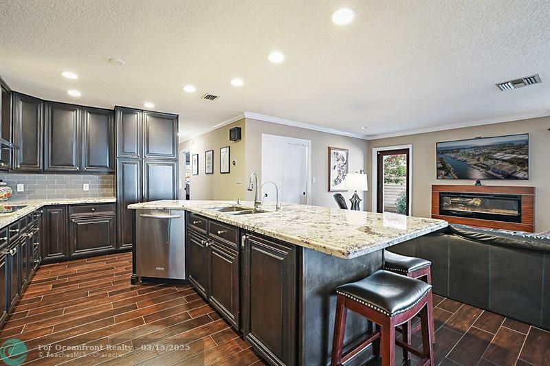 This is an unusual opportunity to own a 3-bedroom 2.5 bath ground floor unit remodeled in the Marina area of Lighthouse Point on the widest canal in the city, so close to the Hillsboro inlet, there is dock space when available on the property. The Unit was decorated by a designer in the last few years. Some of the features in this warm inviting home are stainless steel appliances, beautiful granite counter tops, decorative electric fireplace, full size washer and dryer and an amazing gourmet kitchen and butler bar pantry. Enjoy the use of a beautiful, screened Patio with T and G ceiling overlooking the beautiful wide water views. Launch your Kayak or Paddle Board from the dock and be in the Atlantic Ocean in 10 minutes (literally). Wired for Generator. You must see this gorgeous unit!