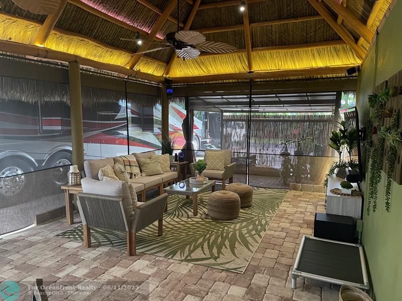 Luxury RV Lot in Aztec RV Resort – Your Dream Retreat! Own a premium lot in the gated, all-ages Aztec RV Resort, perfect for Class A motor coach owners. Enjoy upscale living with a massive custom tiki entertainment area, outdoor kitchen with concrete countertops, Big Green Egg grill, wine fridge, dual beer taps, full stainless steel kitchen with pizza oven, 36†griddle, 2 sinks, and ample storage. Features custom lighting, home automation, surround audio, a zen garden with bamboo and waterfalls, and a private hot tub with waterfront views. Resort amenities include two pools, pickleball/tennis courts, fitness center, and community events. Tailored for Class A coaches under 15 years old, this lot offers a vibrant lifestyle for entertaining and relaxation in a secure, welcoming community.