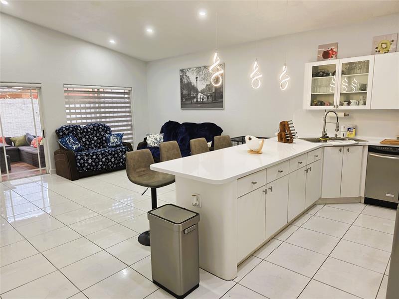 Beautiful 3-bedroom, 2-bath home featuring accordion shutters, a large covered patio and an expansive side yard—perfect for parking your toys. This property offers a bright and open layout with a spacious family room, dining room, and living room in a stacked floorplan filled with natural light. The open kitchen includes a sit-down counter overlooking the family room, ideal for entertaining. All bedrooms are generously sized with ample closet space, including a master suite with his-and-hers closets. Bathrooms have been tastefully updated. Additional features include an indoor laundry room, exterior utility room, Titan electric water heater, and plenty of parking. Located in a wonderful neighborhood close to major highways, great schools, and shopping. Ready to show!