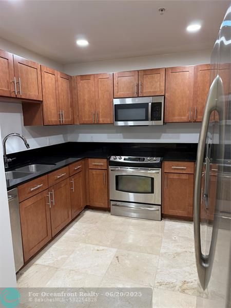 GOURMET KITCHEN WITH WOOD CABINETS, S/S APPLIANCES AND GRANITE COUNTERTOPS. THE MASTER BEDROOM HAS A BIG WALKING CLOSET AND BATHROOM. TRAVERTINE MARMOL FLOORS.