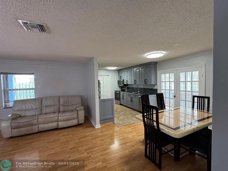 2 beds 2 baths plus a Florida room with extra closet that can be your 3rd bed. Newer contemporary kitchen wood cabinets with granite countertops & newer SS appliances. Tile floors in kitchen, baths and bedrooms. Laminate wood floors in living areas. New air conditioning & ducts installed in 2024. New Roof installed 12/21 baths remodeled about 3 years ago. Fenced back yard with large patio, several fruit trees. Circle driveway & carport that fit up to 5 cars. The house comes with hurricane shutters. New water heater. Crown molding. Linen closet in the hallway & inside laundry room. Updated electrical panel. French doors to the Florida room. Access to the patio by the laundry room and the Florida room. Great location on a quiet avenue, close to shopping, gym, restaurants and coffee shops.