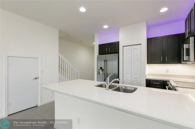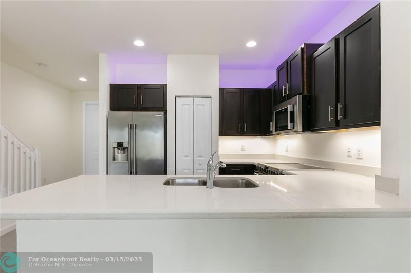 Beautiful waterfront townhome freshly painted features brand new waterproof vinyl floors on the second floor, band new washer/dryer and brand new A/C handler. Open concept kitchen with quartz countertops, wood cabinets, and stainless-steel appliances; modern bathrooms, and spacious bedrooms. It is located in the quiet and convenient Eastside Village community near the amazing and booming Oakland Park downtown!. The complex features a pool, running/walking track, private lake, kids park/playground area and plenty of guest parking. This is a pet-friendly community with a low monthly HOA. Take advantage of this prime location! Near to the beach, shopping, entertainment and easy access to major highways.