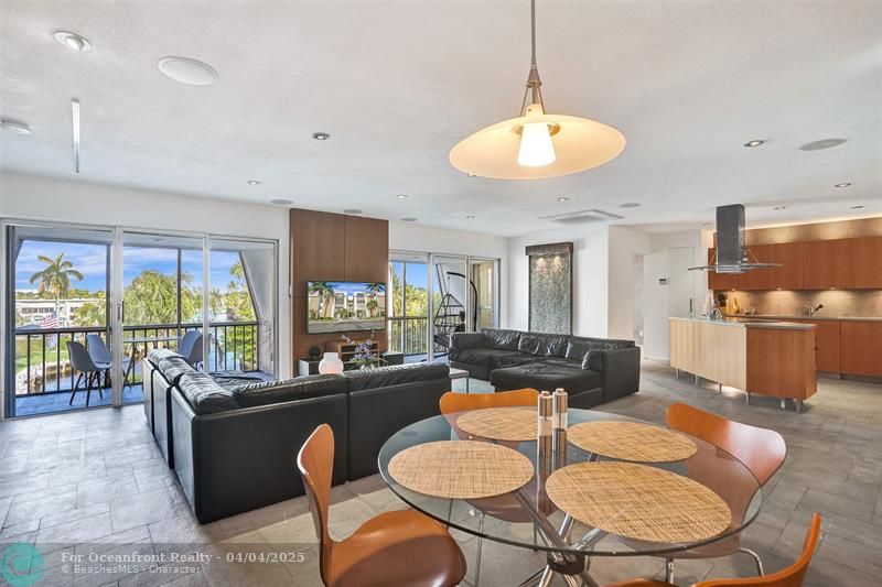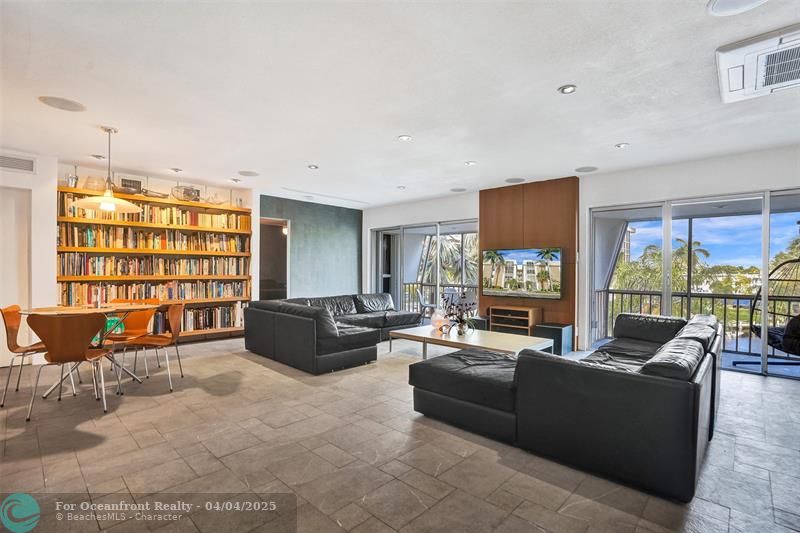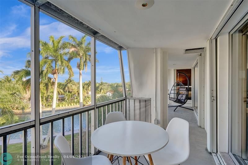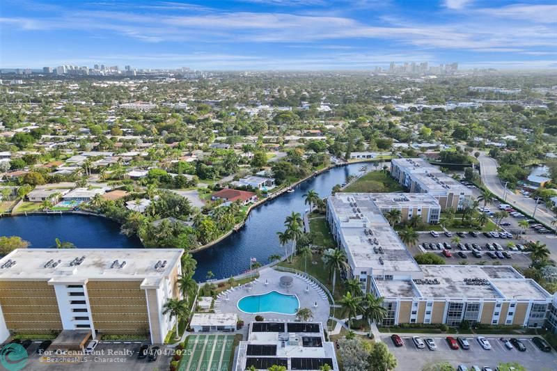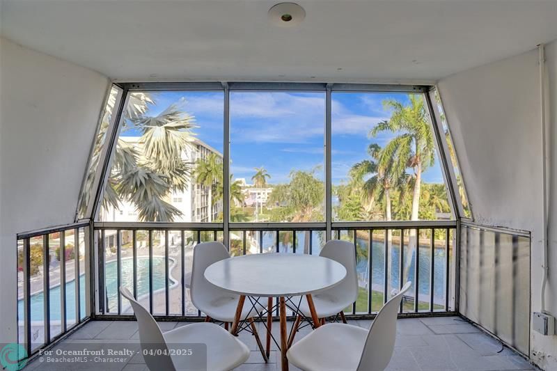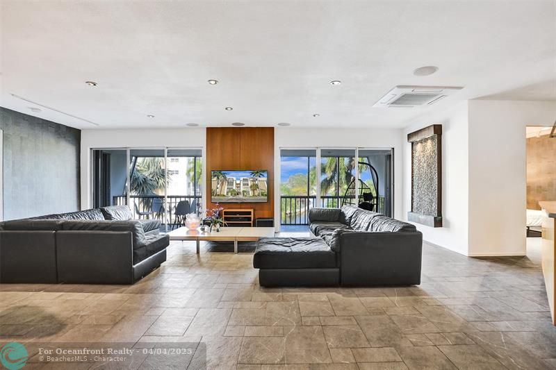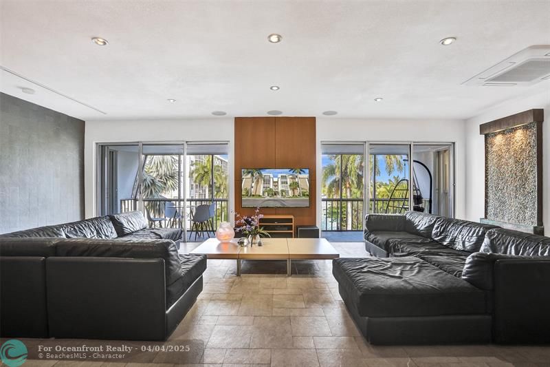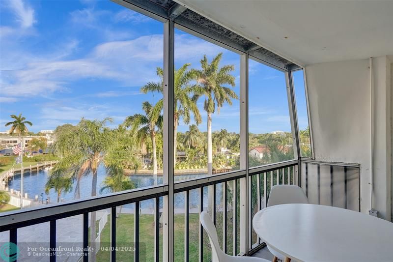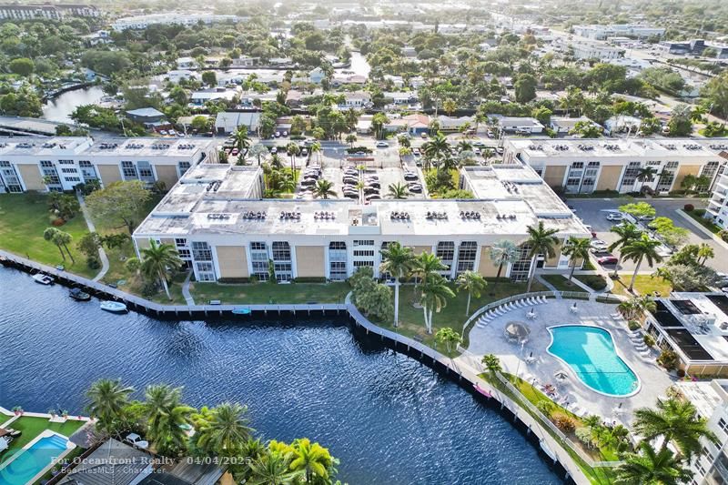 Experience loft-like living in one of the building’s rare 1,200 SF residences. A hidden gem, this unit is unlike any other in the complex. Originally a 3-bedroom, this reimagined 2-bedroom layout expands the great room, capturing panoramic views of the Middle River. The gourmet kitchen, double balcony, and oversized 5x7 “party shower†create a home for comfort & entertaining. Italian porcelain tile floors & accent walls bring a modern aesthetic, complemented by a 7.2 theater-quality surround sound system. Amenities include a Johnny Weissmuller–designed pool, tennis courts & free boat dockage. 2 parking spaces, 3 storage units, pet-friendly. Building passed 50-year recertification and SIRS. Roof resurfaced Nov. 2025. Maintenance $1158/mo & $148/mo for Cable TV & Internet.