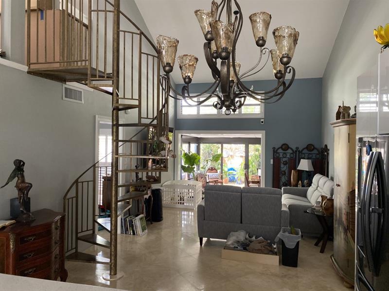 This is a unique & rare opportunity to own this immaculately completely renovated. 2-bedroom, 2-bath unit including a loft (Size 10'2" x 14'2") that could be used as an office, den or even a third bedroom. All impact windows and doors, vaulted ceilings, travertine flooring throughout, a 50K Renovated Gourmet kitchen (Size 13'3" x 21'2" that includes an island of 5' x 8'4" (8 people seating). Updated baths, custom closets & yard completely done w/Travertine, it's peaceful, private, perfect for relaxation