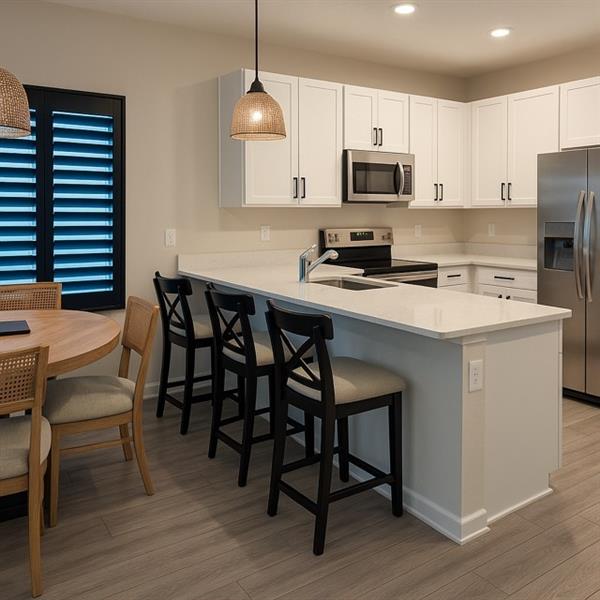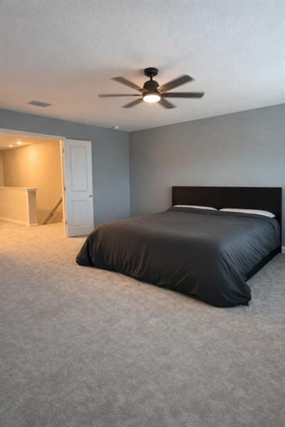 Brand-new MOVE IN ready-Truman model in Marion Ranch Phase I. The first floor features an open-concept layout with a modern kitchen showcasing quartz countertops, Frigidaire stainless steel appliances, center island with seating, and corner pantry. Interior upgrades include designer semi-gloss earth tone paint, upgraded cabinet hardware, five ceiling fans, and a new upper hallway light fixture. Striking black Bahama shutters and professionally tinted windows to enhance energy efficiency and help reduce electric costs. The second floor includes all three bedrooms, laundry room has new washer dryer, and a spacious owner's suite with walk in closet with built-ins, dual quartz vanities, and walk in shower. Additional features include energy-efficient HVAC, water heater & dual pane windows.
