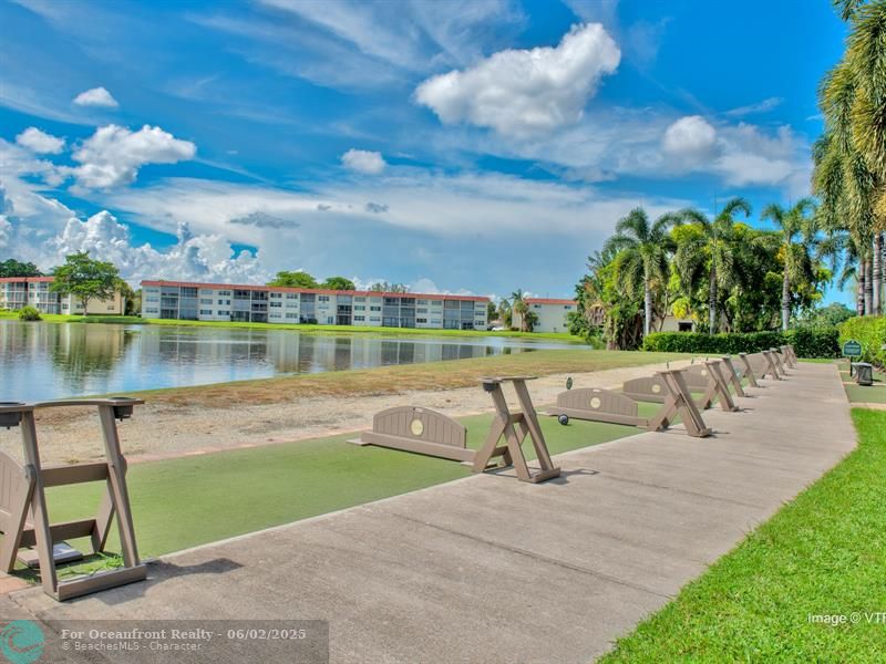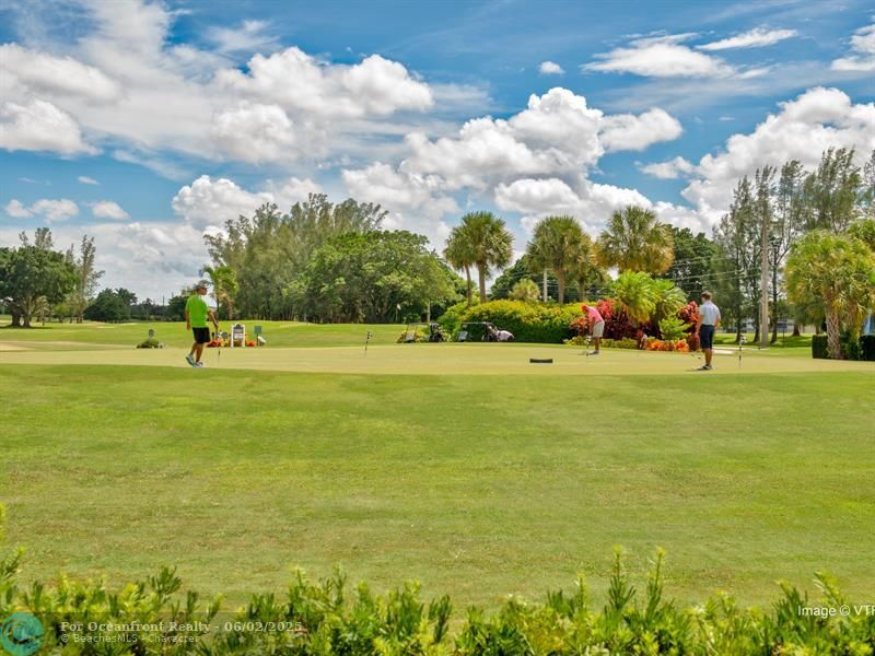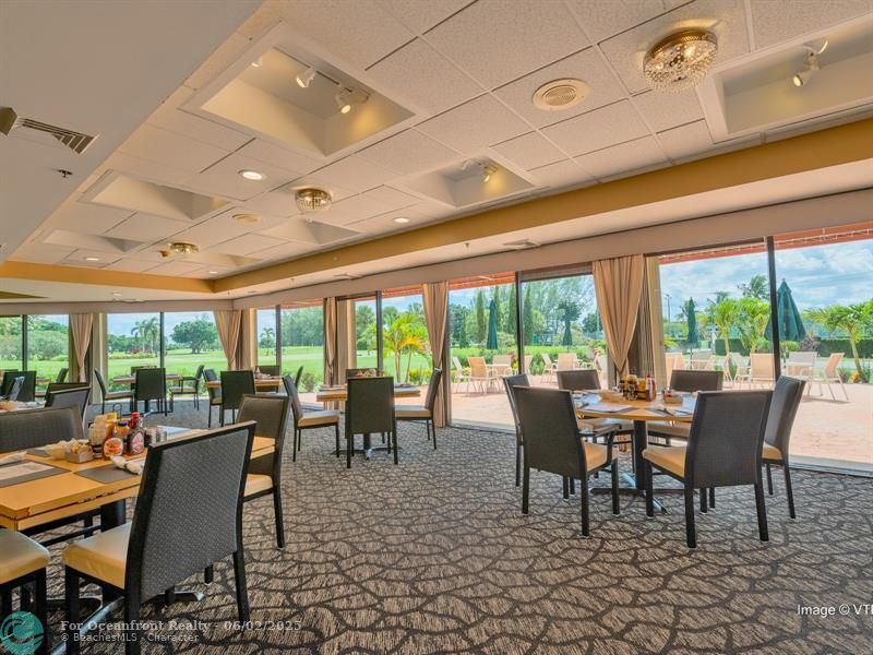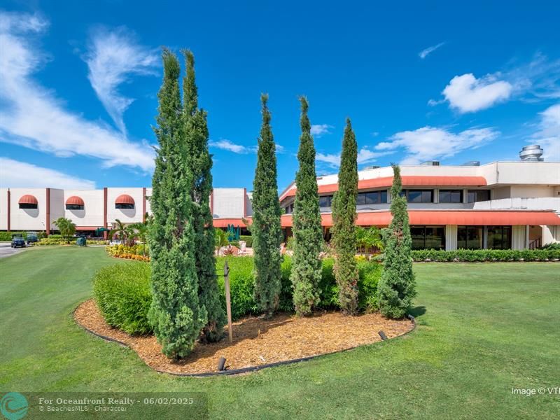 Enclosed patio with hurricane impact windows and exit door to lovely landscaping onto golf course, no hurricane windows in front.