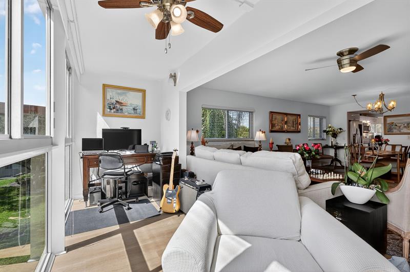 Amazing green garden views from this beautifully maintained corner Magnolia model! Bright, spacious, and tastefully updated, impact windows throughout, vinyl floors, and honeycomb electric shades. Remodeled kitchen with granite countertops, stainless-steel appliances, recessed lighting, a double sink, pantry, and reverse osmosis water system. Enclosed balcony extends the living room, offering additional interior square footage and a perfect space to relax or entertain. Master bedroom with walk-in closet and a remodeled bathroom with a walk-in shower and dual vanities. Newer A/C and water heater, parking space right across from the elevator. Located between 2 pools, close to the Pembroke Road back gate. Association fee covers cable, internet, water, insurance, roof, and all amenities.