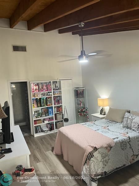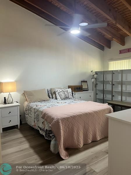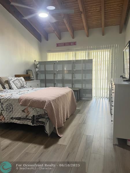 Inside, the home features luxury vinyl flooring in both bedrooms, each with oversized walk-in closets. The extra-large primary suite boasts soaring vaulted ceilings with exposed beams and a fully renovated en-suite bathroom (2024). The open-concept living and dining area also features vaulted ceilings with exposed beams, creating a light, airy feel throughout. Additional upgrades include:New A/C (2024) Updated guest bathroom Fresh interior paint New vertical blinds on sliding doors and faux wood blinds throughout. All exterior fascia and siding replaced (2025)