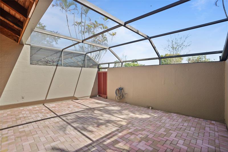 This spacious 3-bedroom, 3-bath Greenhouse model is the largest in Villas West, offering privacy and green space views with no rear neighbors. The flexible layout includes a downstairs bedroom with full bath for guests, an upstairs suite with its own ensuite, and a luxurious master retreat featuring a loft, walk-in closet, and expansive bath. Dramatic cedar-beamed ceilings and bright open living areas flow seamlessly into a large screened patio, perfect for indoor-outdoor living. The eat-in kitchen features granite counters, custom wood cabinetry, and a laundry room. Walk to the pool, playground, and courts for pickleball, tennis, basketball, and racquetball. Updates include a 2018 flat roof, 2011 shingle roof, 2016 electrical, and 2015 AC.
