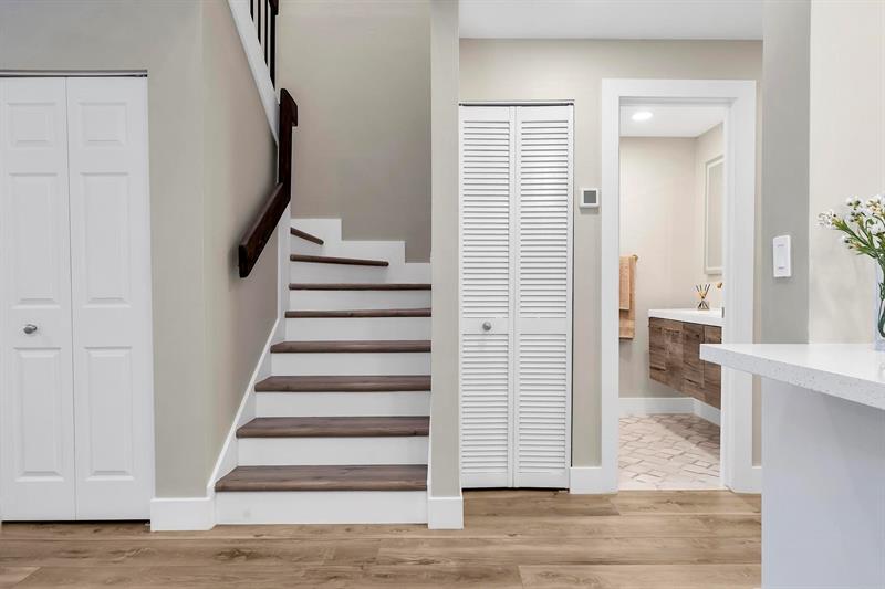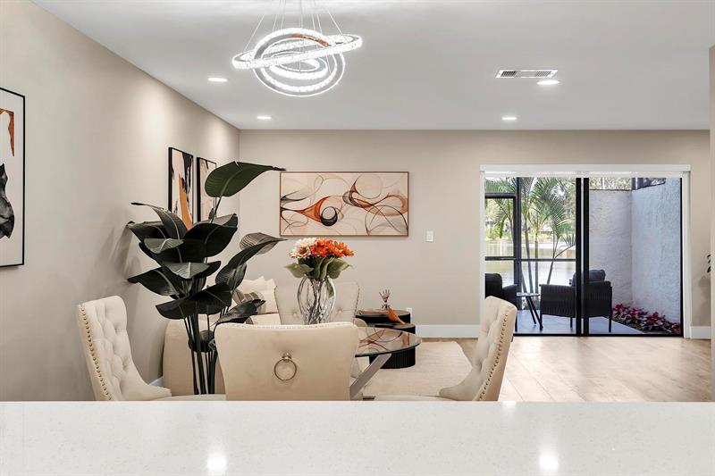 Welcome to Villa Agua, a stunning 3-bedroom, 2.5-bath corner unit townhome featuring impeccable manicured landscaping and breathtaking lake views from all over. Step inside to a beautifully decorated home with new kitchen cabinets, modern appliances, elegant flooring throughout, including the staircase and a beautiful screened, outdoor patio to enjoy the amazing lake views. This model-perfect home is move-in ready, waiting eagerly for its new owner and their toothbrush. Embrace the comfort, style, and tranquility of this exceptional residence — your dream home awaits!