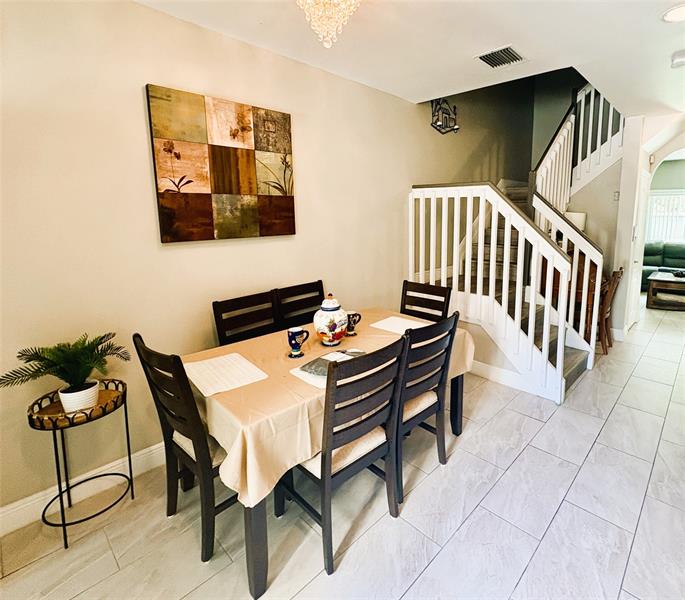 Welcome to this stunning townhouse located in the highly sought-after Plantation Trace community. This 3-bedroom, 2.5-bathroom home offers a perfect blend of comfort, style, and convenience. Step into a spacious interior featuring an layout that seamlessly connects the living, dining, and kitchen areas. The kitchen boasts modern stainless-steel appliances, ample counter space. All three bedrooms are upstairs, The primary suite features a beautifully bathroom with dual sinks and a luxurious shower. Also includes laundry room for added convenience and a guest half-bath located on the first floor. Enjoy Tile floors on the first floor and wood laminate upstairs. Additional updates include a new roof, newer AC, hurricane Impact Doors and Windows for peace of mind.