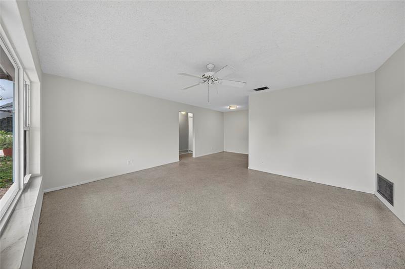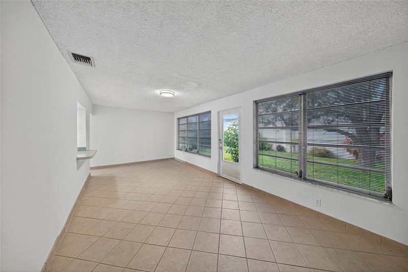 Spacious 2 bed/2 bath home with large family room and 1 car garage on a quiet street. All on one level. In desirable 55+ community of Leisureville in Pompano. Terrazzo and tile floors. Impact resistant garage door and most windows. Spacious primary bedroom with large walk-in closet and ensuite travertine marble bath. Corian kitchen counters. 2019 AC. Interior freshly painted. Washer/dryer. Paver driveway. Desirable location. Private backyard with no homes behind you. Tropical plants in your yard. Resort-like amenities: 2 pools, community room, golf course, shuttle. Responsive onsite management. Very low HOA maintenance fee of $298 covers water, sewer, landscaping, pools, community rooms, and periodic exterior painting of home and roof. Minimum 700 credit score required.