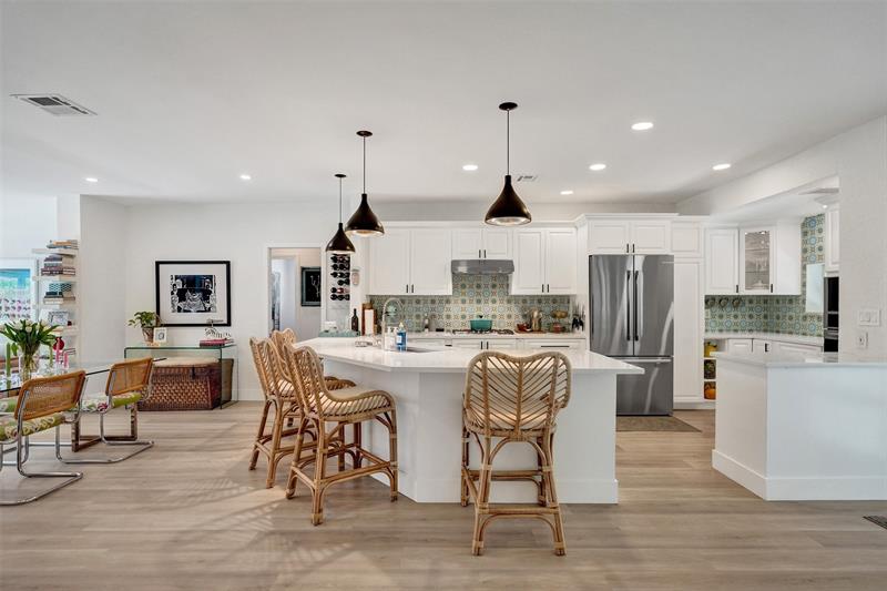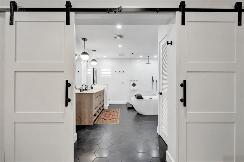 Stunning 4-bed, 3-bath + bonus room home should be in the pages of a design magazine! Tastefully upgraded & meticulously maintained, it offers style, comfort & attn. to detail. Located in highly sought-after Hillsboro Shores—Pompano Beach’s most exclusive neighborhood w/ private beach access—this tropical retreat features kitchen w/ upgraded appl. incl. Bosch gas range & bar overlooking spacious living & dining areas. Primary suite w/ barn doors leads to spa-inspired bath, complete w/ dual-sink vanity, sleek shower, stand alone tub & lg walk-in closet. 2 BRs w/ terrazzo & plantation shutters add timeless charm. Private fenced yard is an entertainer’s dream w/ heated pool & hot tub. Add. upgrades incl. 2 ACs, tankless gas water heater & more. Ready for new owners & can be sold turn key!