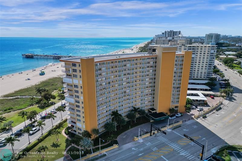 INCREDIBLE CORNER UNIT WITH VIEWS OF OCEAN AND THE POMPANO PIER FROM A VERY SPACIOUS, WRAP AROUND PRIVATE BALCONY. THIS BRIGHT, SPACIOUS UNIT WITH IMPACT WINDOWS AND DOORS. UPDATED OPEN KITCHEN WITH STAINLESS STEEL APPLIANCES AND PLENTY OF CABINTRY. PRIMARY BEDROOM WITH WALK IN CLOSET AND A SMALLER CLOSET. CERAMIC TILE AND LAMINATE FLOORING, WASHER AND DRYER IN UNIT, EXTRA STORAGE SPACE, GARAGE PARKING WITH PLENTY OF GUEST PARKING. BUILDING OFFER BEAUTIFUL POOL AREA WITH BEACH ACCESS TO THE BEACH AND PIER. EXERCISE ROOM, COMMUNITY ROOM. SECONDS TO MANY RESTAURANTS AND SHOPPING. NEAR GOLFING, PICKLEBALL AND TENNIS.